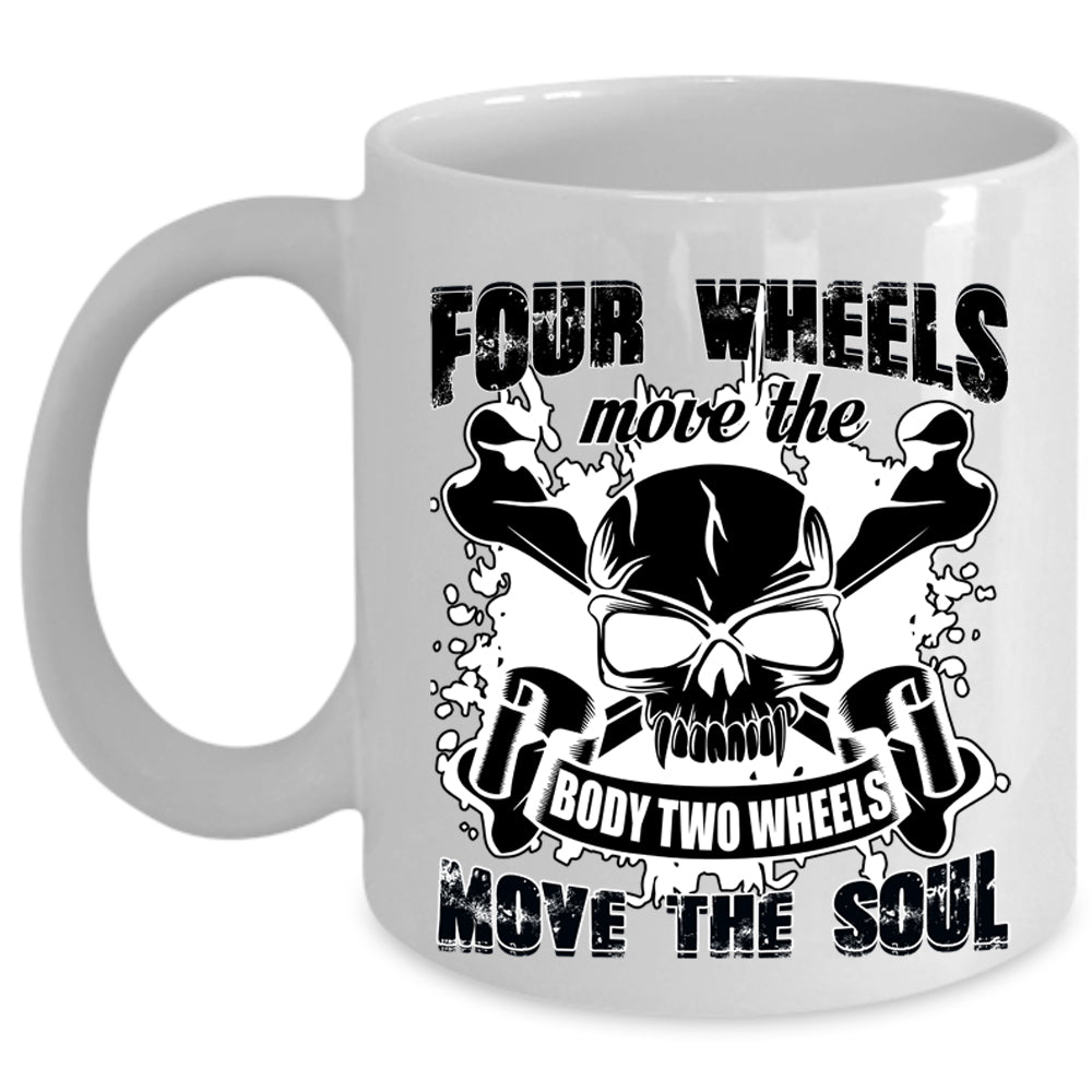 Two Wheels Move The Soul Coffee Mug, Four Wheels Move The Body Cup