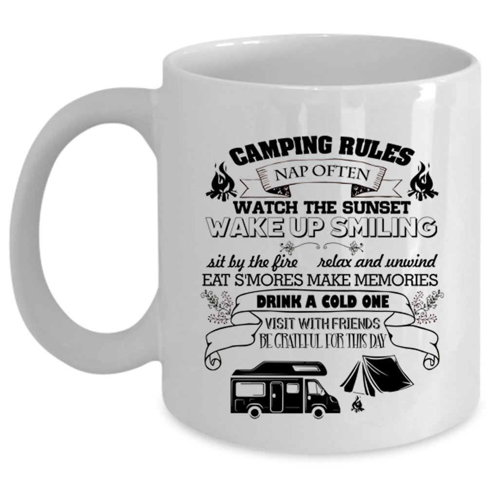 Watch The Sunset Coffee Mug, Camping Rules Cup
