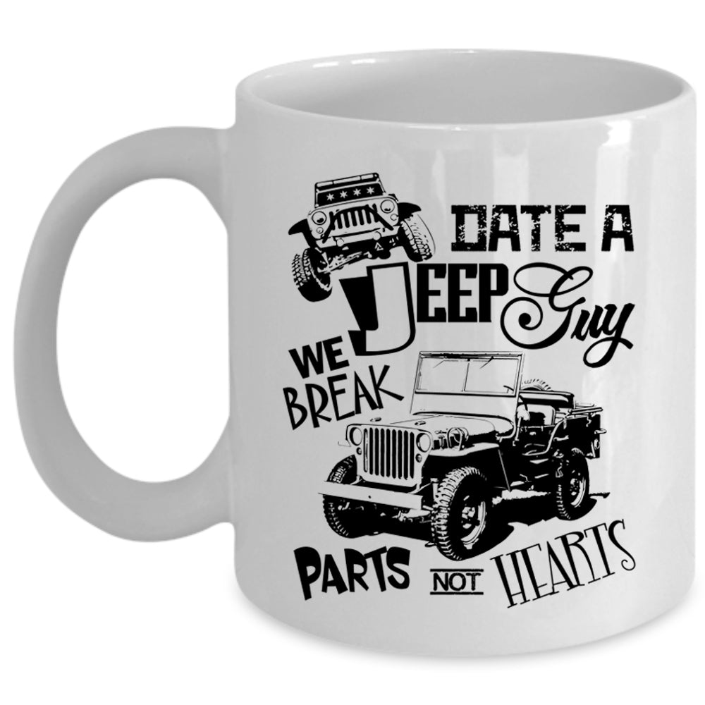 We Break Parts Not Hearts Coffee Mug, Date A Jeep Guy Cup