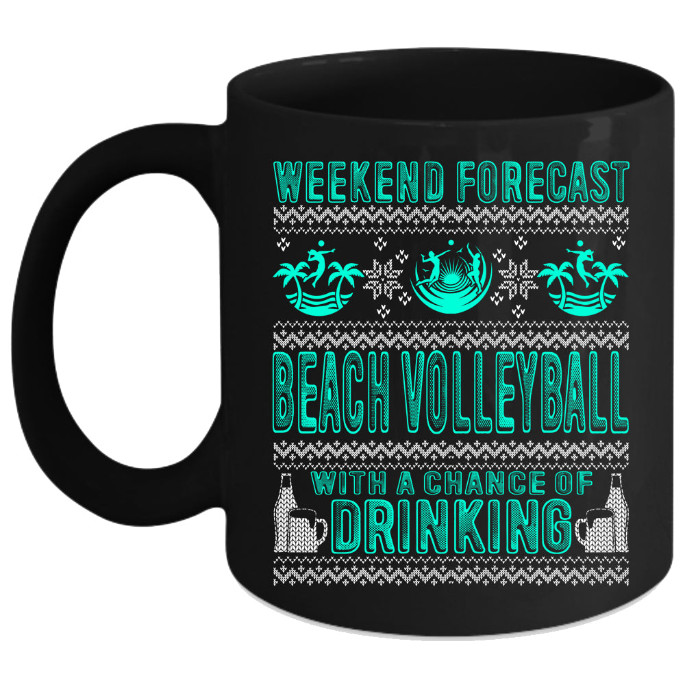 Weekend Forecast Beach Volleyball Coffee Mug, Cool Sporty Coffee Cup