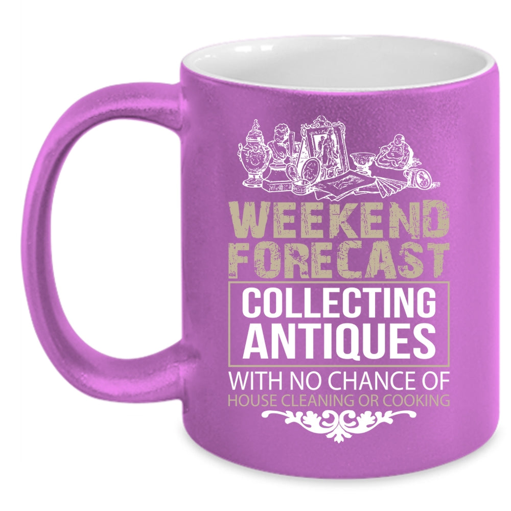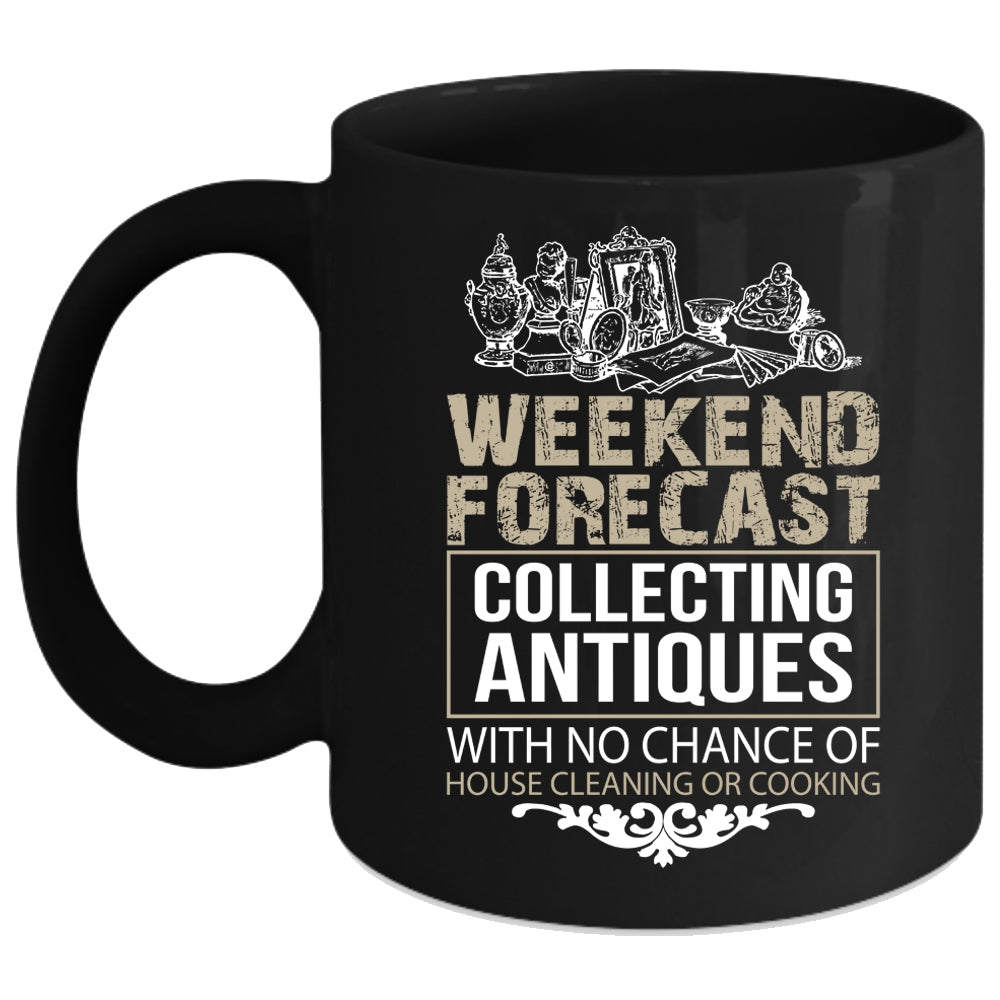 Weekend Forecast Collecting Antiques Coffee Mug, Funny Collecting Coffee Cup