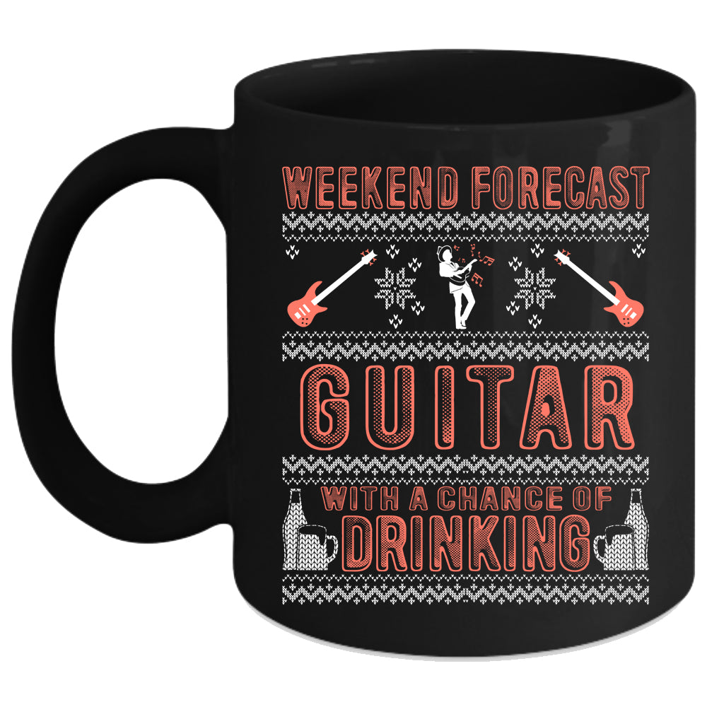 Weekend Forecast Guitar Coffee Mug, Chance Of Drinking Coffee Cup