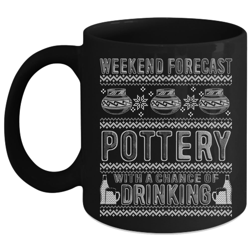 Weekend Forecast Pottery Coffee Mug, Chance Of Drinking Coffee Cup
