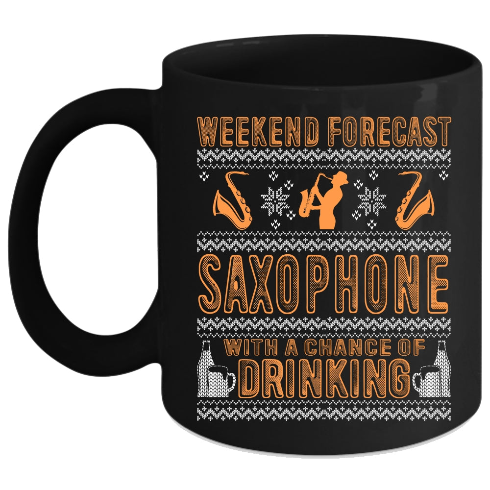 Weekend Forecast Saxophone Coffee Mug, Chance Of Drinking Coffee Cup