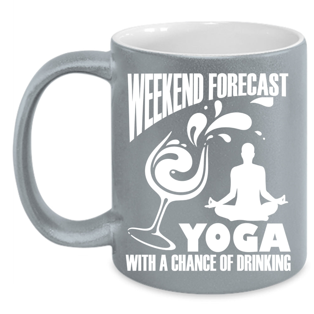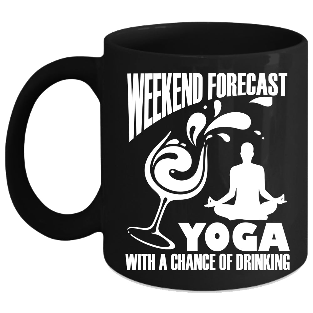 Weekend Forecast Yoga Coffee Mug, Chance Of Drinking Coffee Cup