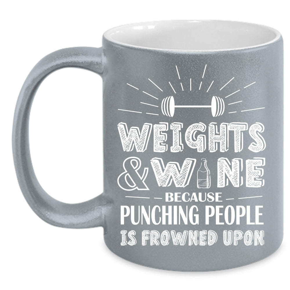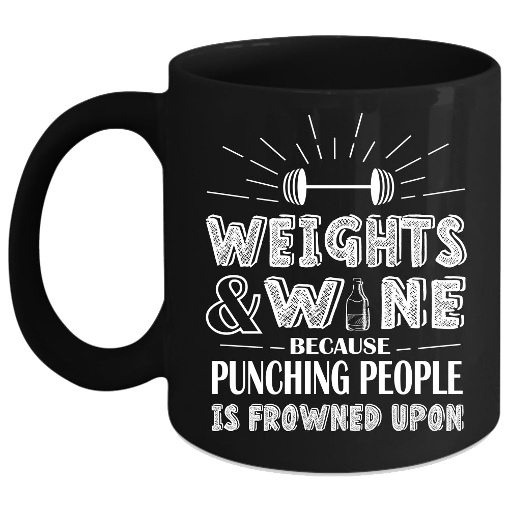 Weights And Wine Coffee Mug, Funny Gift For Wine Drinker Coffee Cup