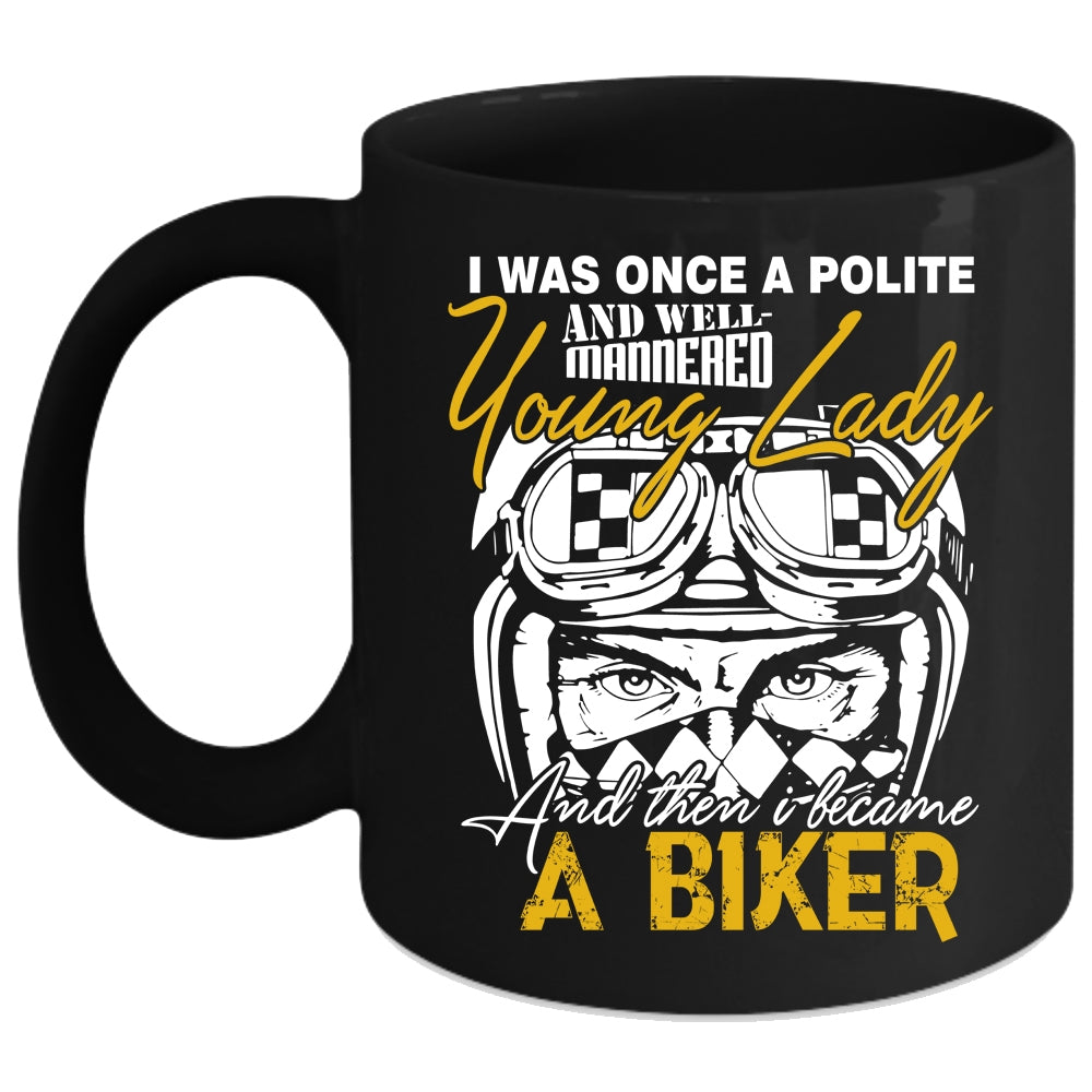 Well Maaered Young Lady Coffee Mug, I Became A Biker Coffee Cup
