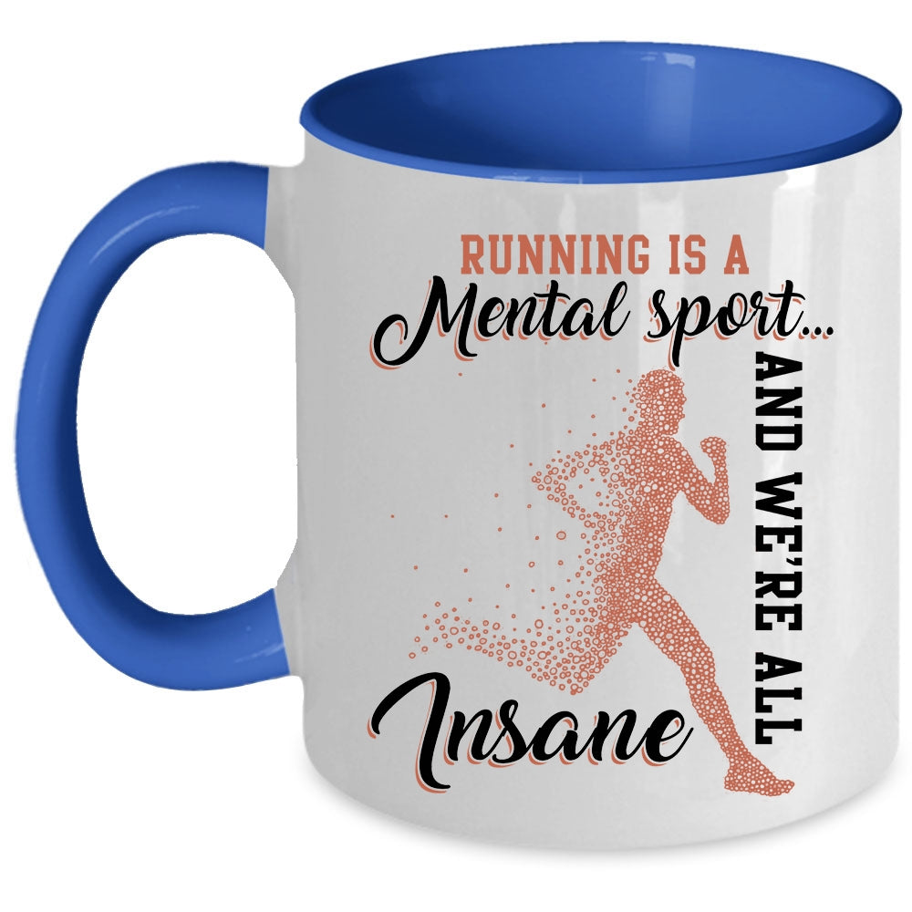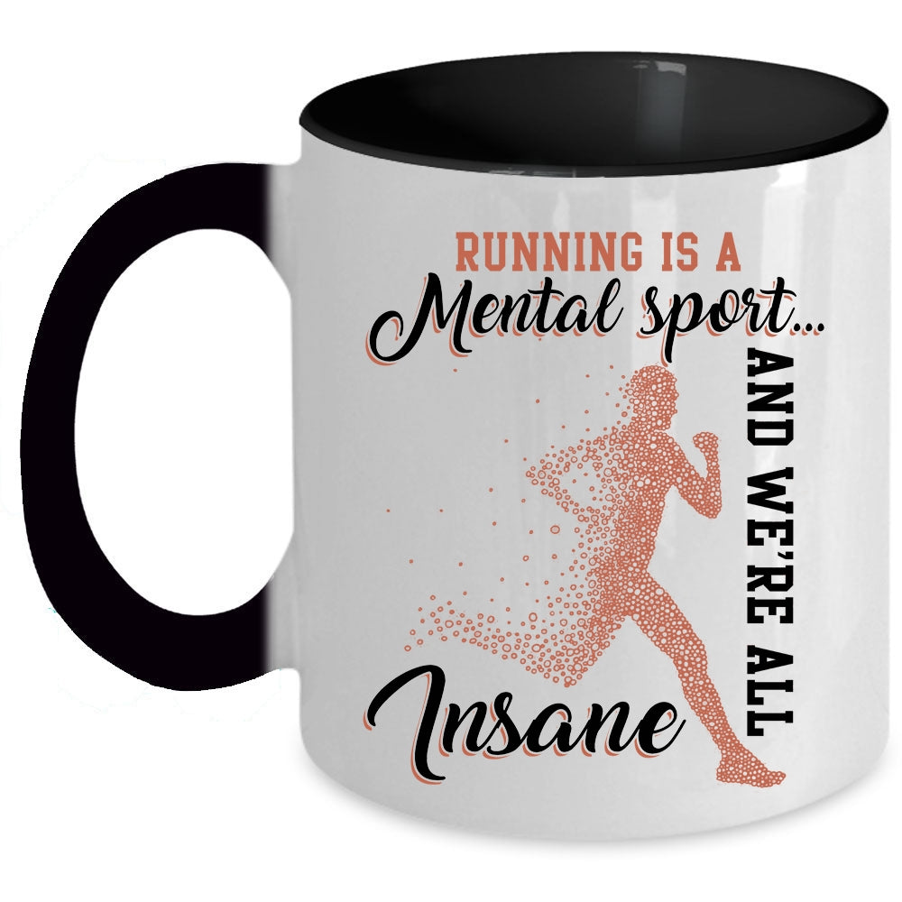 We're All Insane Coffee Mug, Running Is A Mental Sport Accent Mug
