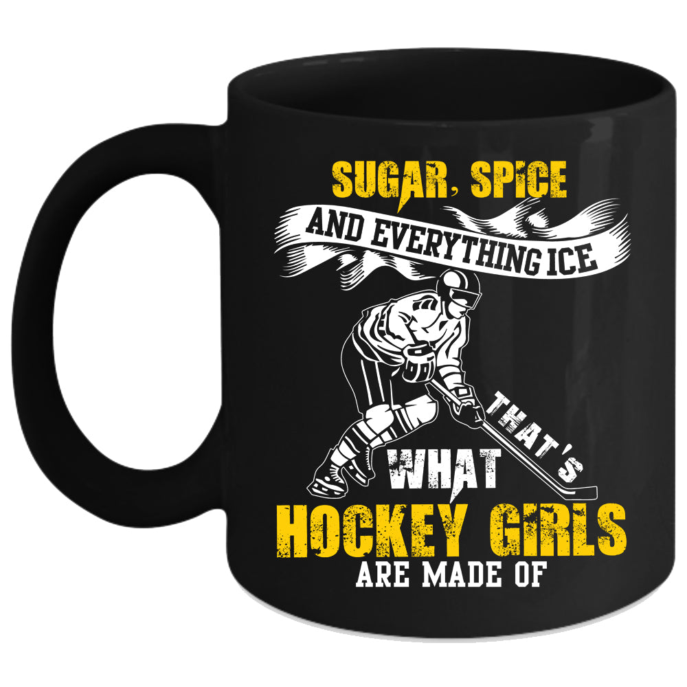 What Hockey Girls Are Made Of Coffee Mug, Sugar Spice And Everything Ice Coffee Cup