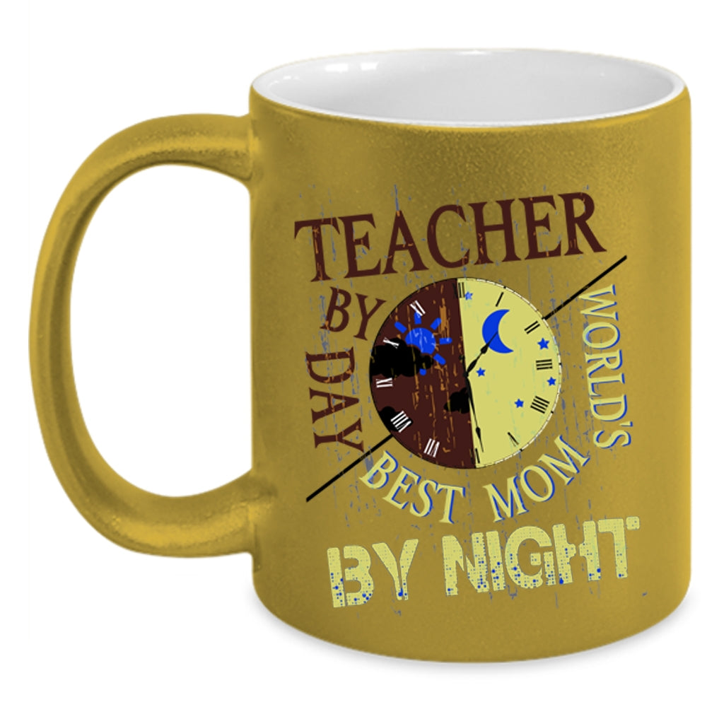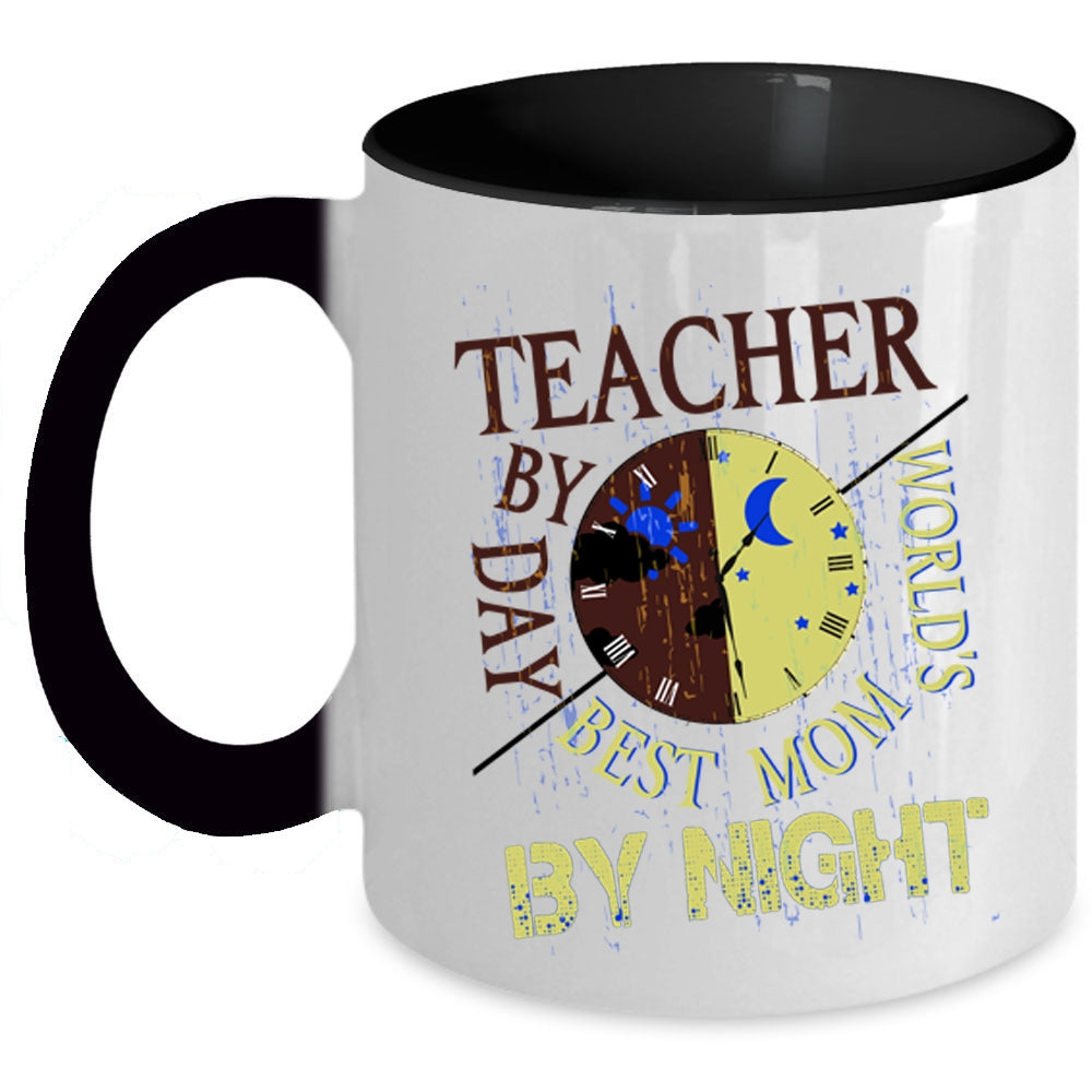 World's Best Mom By Night Coffee Mug, Teacher By Day Accent Mug