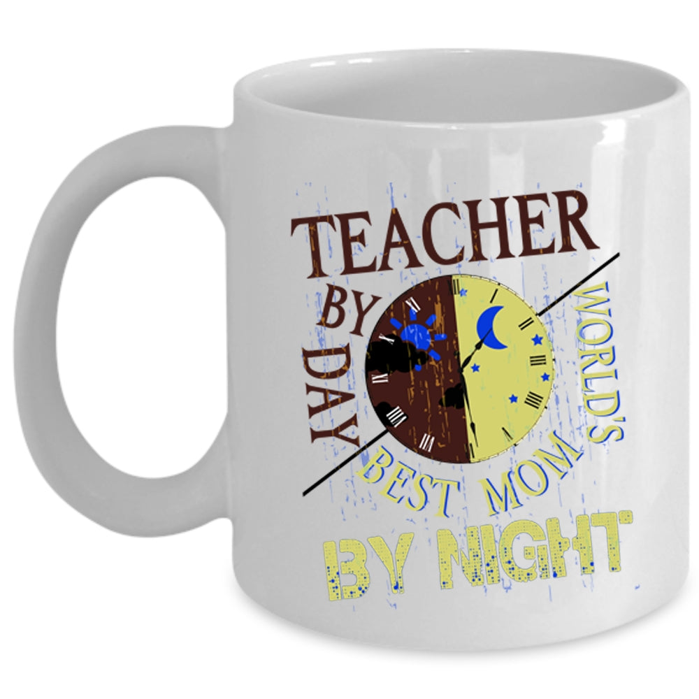World's Best Mom By Night Coffee Mug, Teacher By Day Cup
