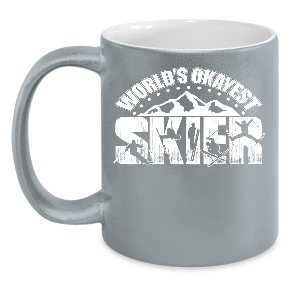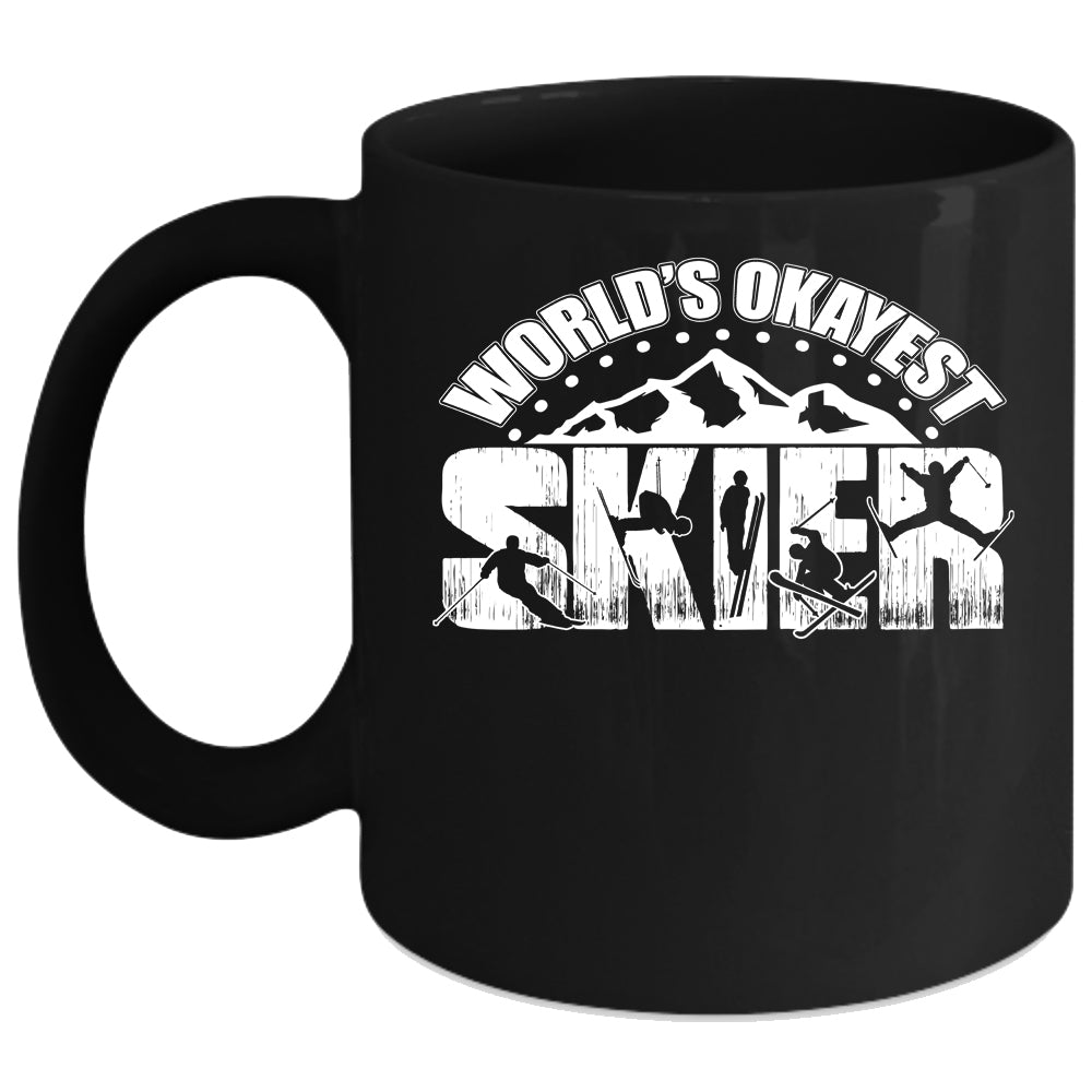 World's Okayest Skier Coffee Mug, Cool Gift For Skier Coffee Cup