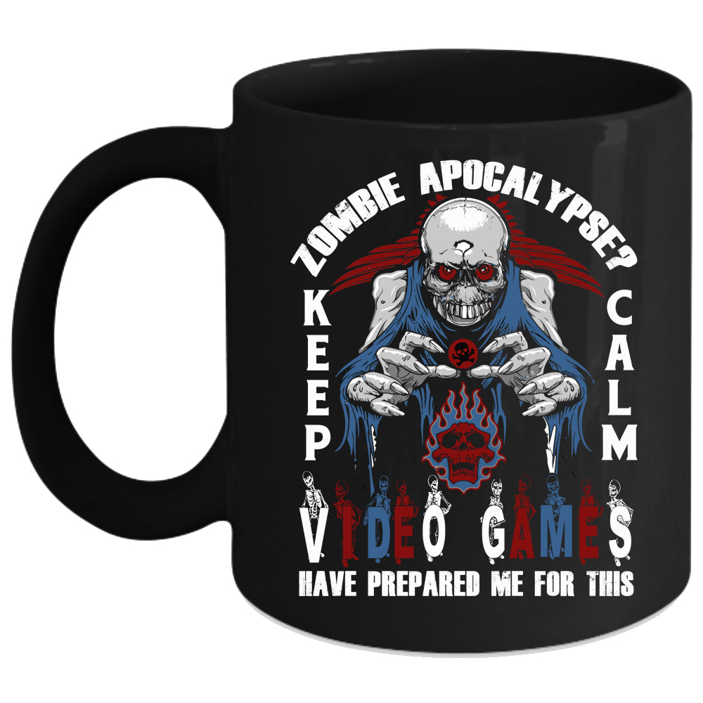 Zombie Apocalypse Coffee Mug, Keep Calm Video Games Coffee Cup