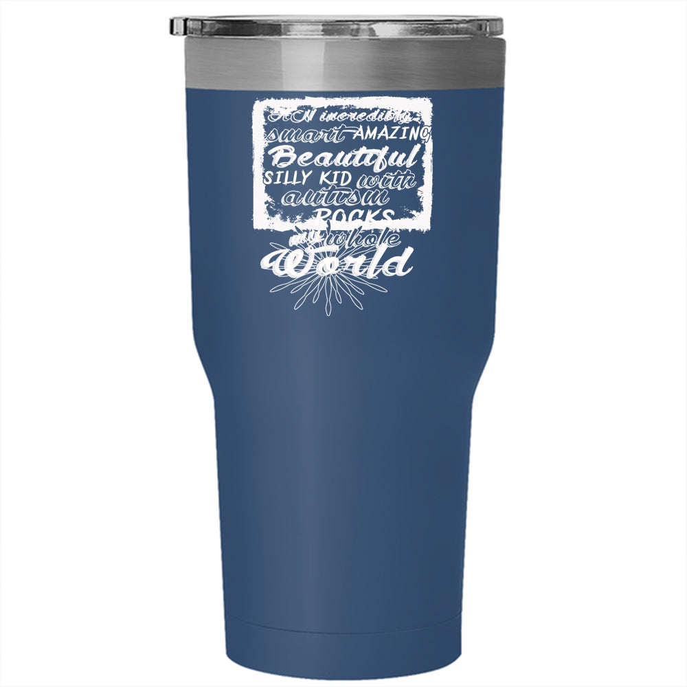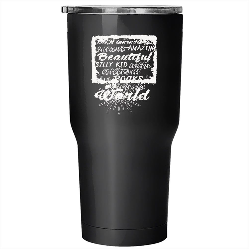 Autism Rocks My World Tumbler 30 oz Stainless Steel, Cool Autism Mom Travel Mug