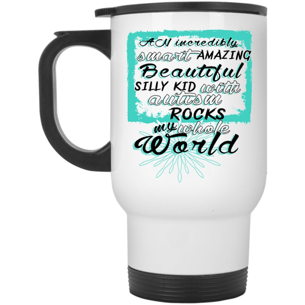 Cool Autism Mom Travel Mug, Autism Rocks My World Mug