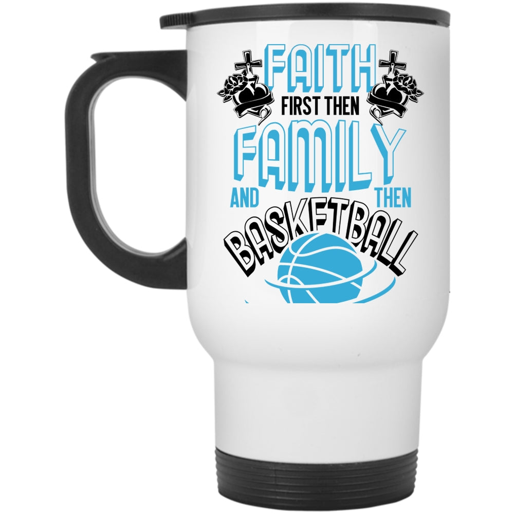 Cool Basketball Travel Mug, Faith First Then Family And Then Basketball Mug