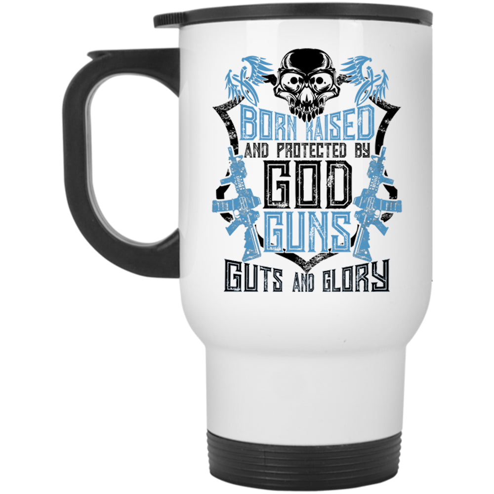 Cool Gunner Travel Mug, Born Raised And Protected By God Guns Mug