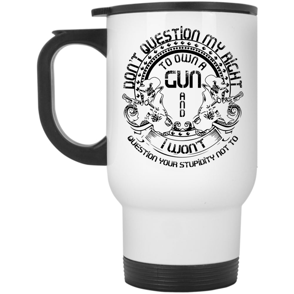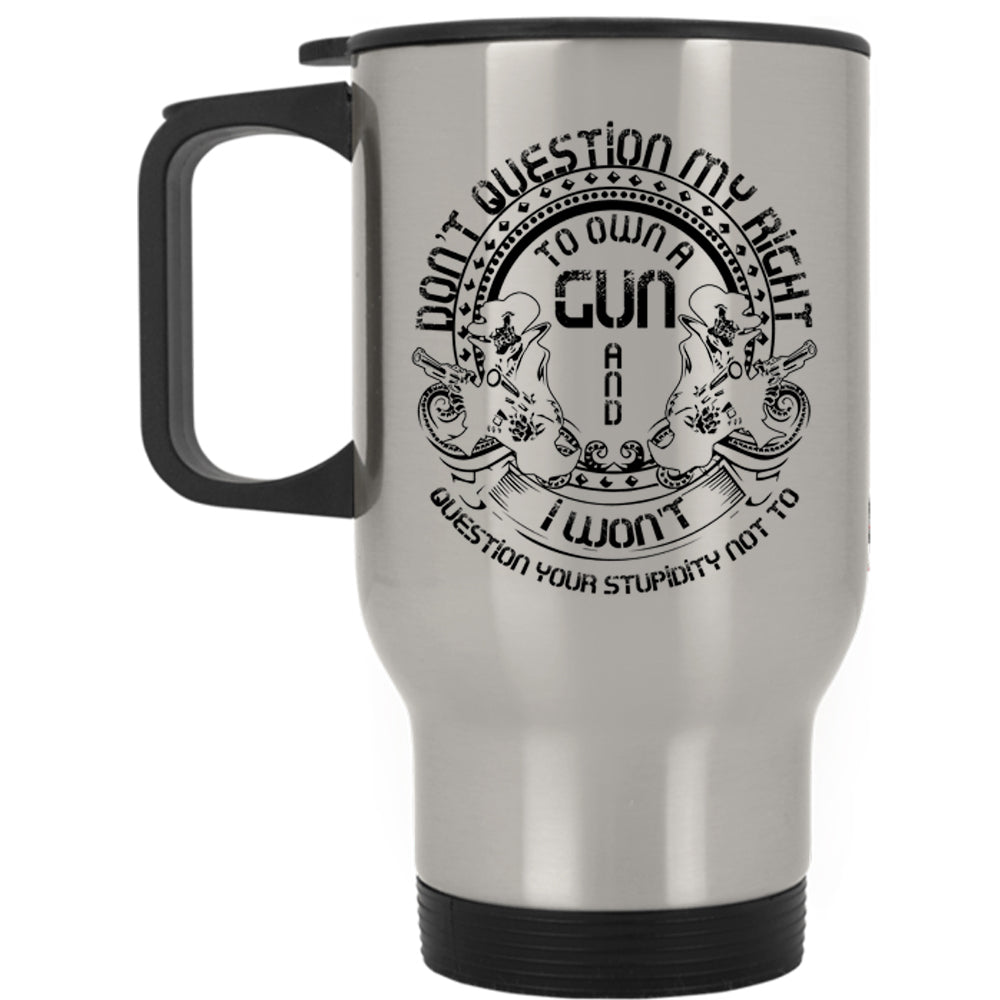 Cool Gunner Travel Mug, Don't Question My Right To Own A Gun Mug