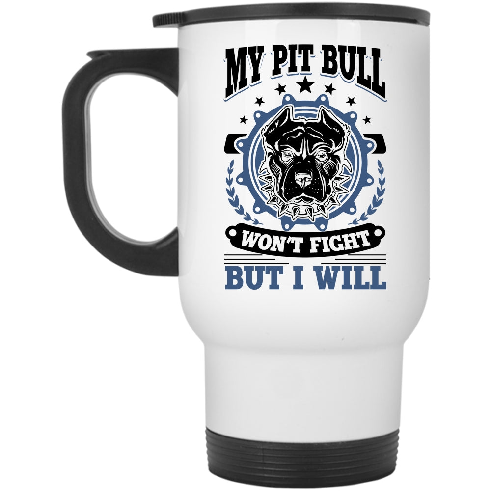 Cool Pitbull Owner Travel Mug, My Pit Bull Won't Fight But I Will Mug