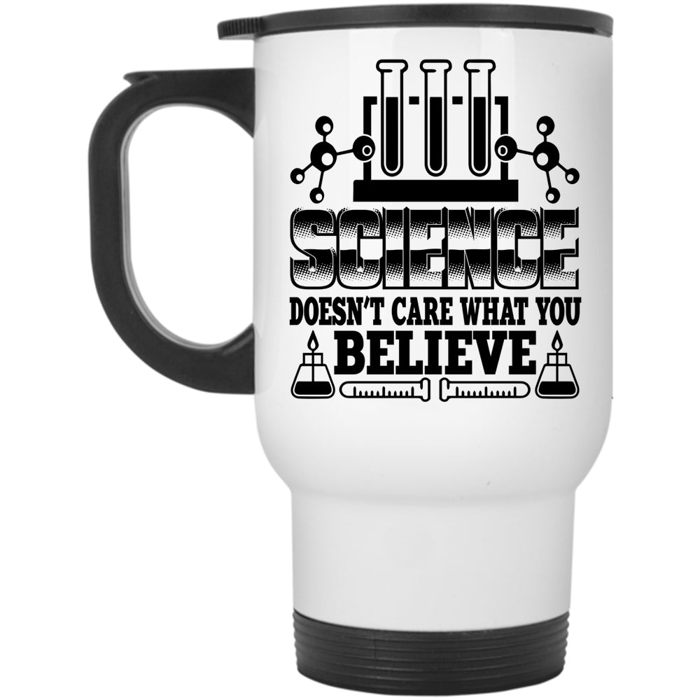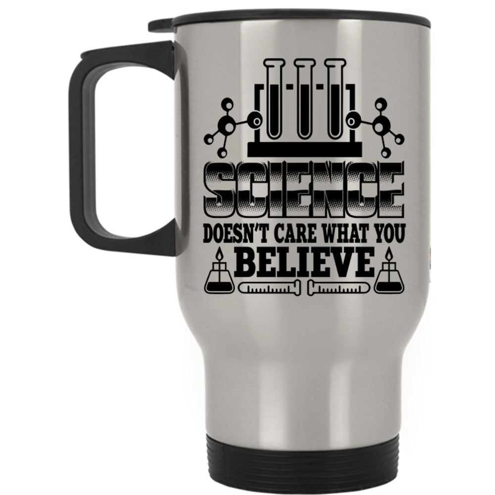 Cool Scientist Travel Mug, Science Doesn't Care What You Believe Mug