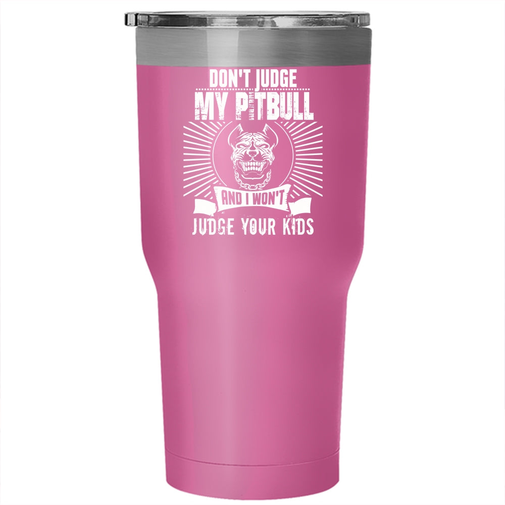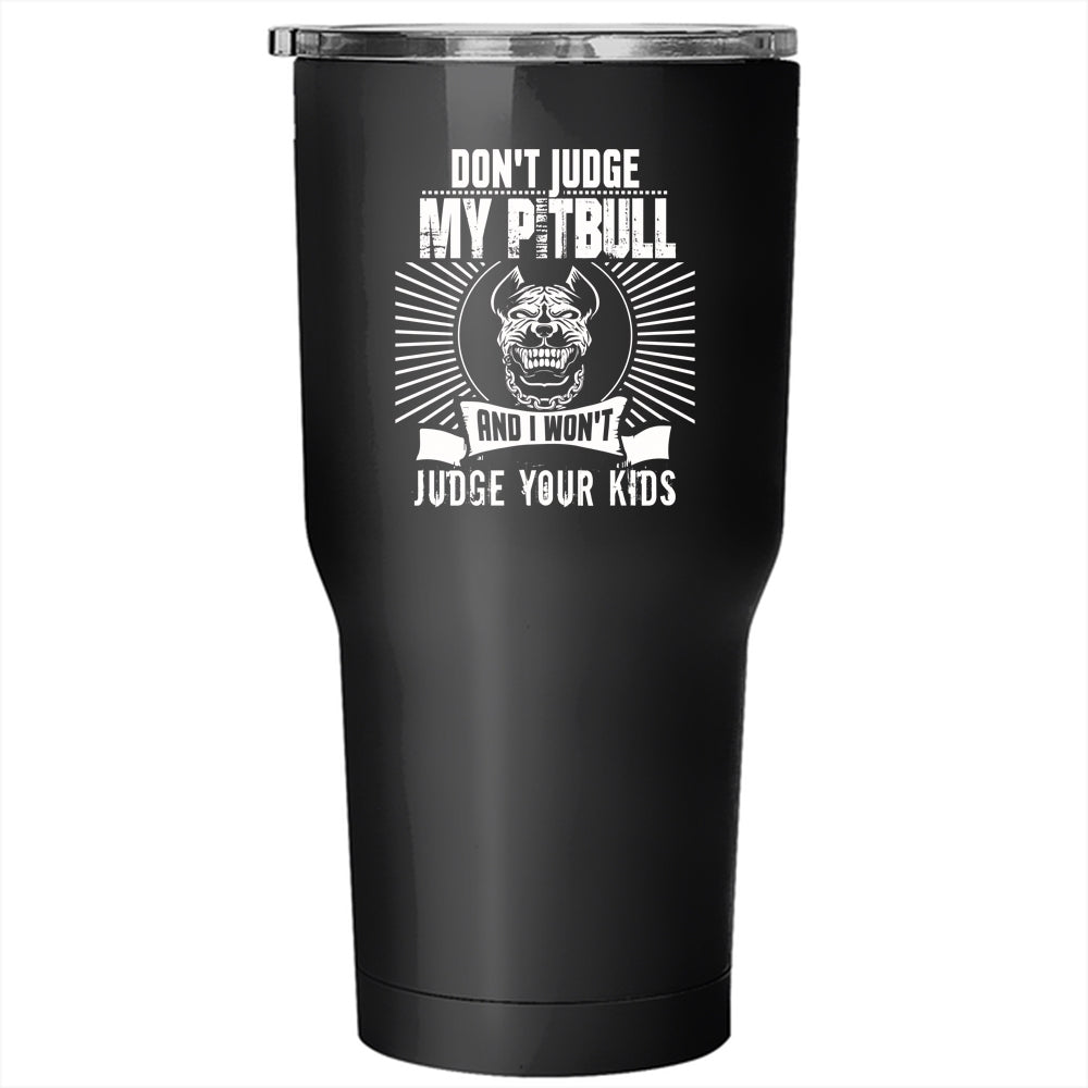 Don't Judge My Pitbulls Tumbler 30 oz Stainless Steel, Gift For Pitbull Lovers Travel Mug