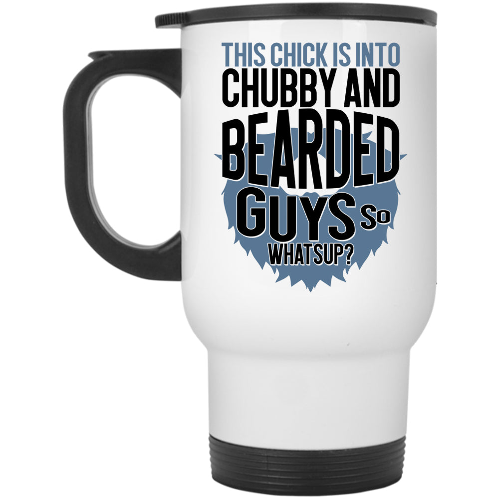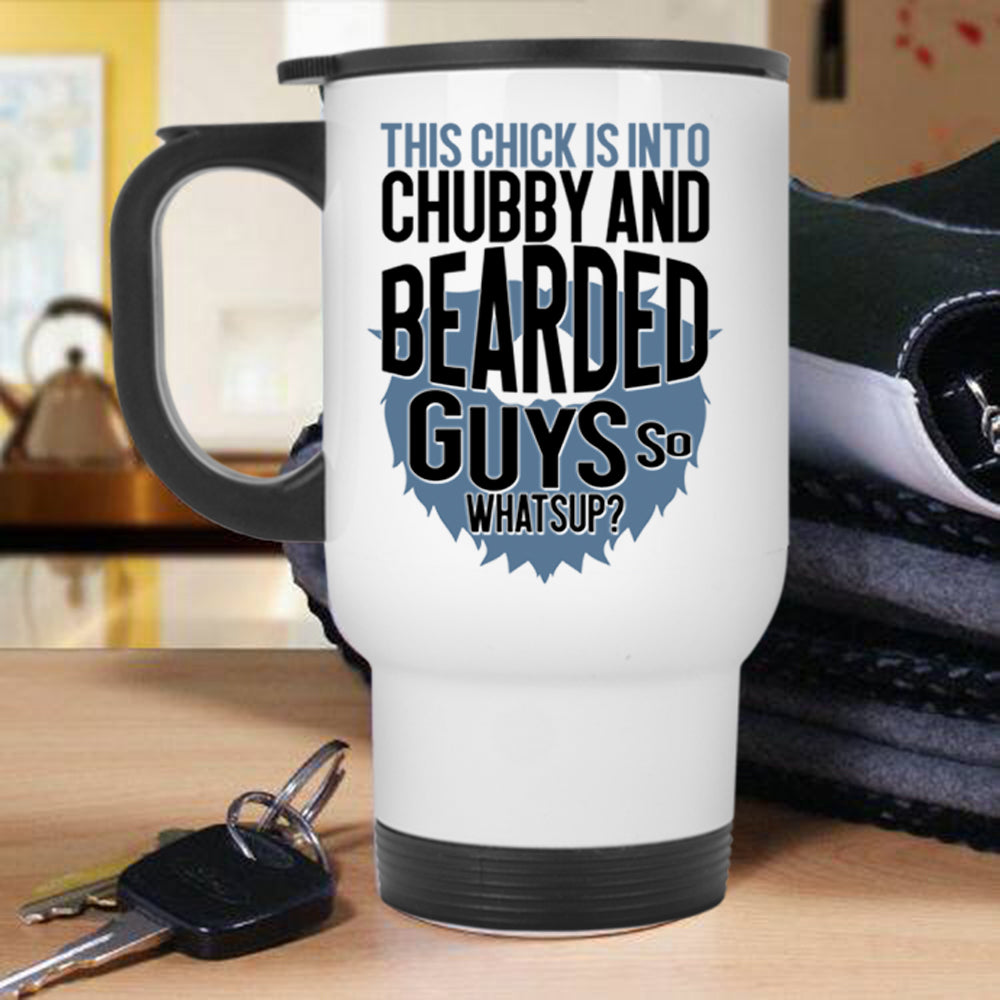 Funny Bearded Guys Travel Mug, This Chick Is Into Chubby And Bearded Guys Mug