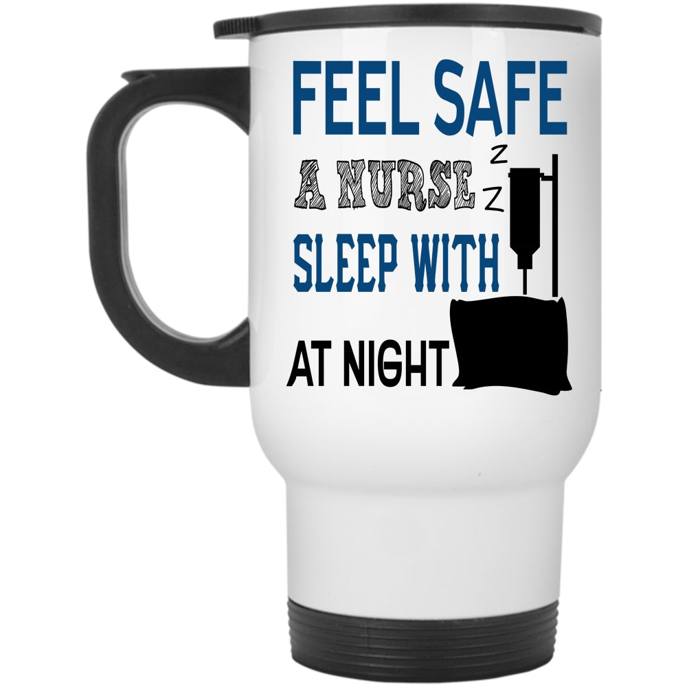 Funny Nusres Travel Mug, Feel Safe At Night Sleep With A Nurse Mug