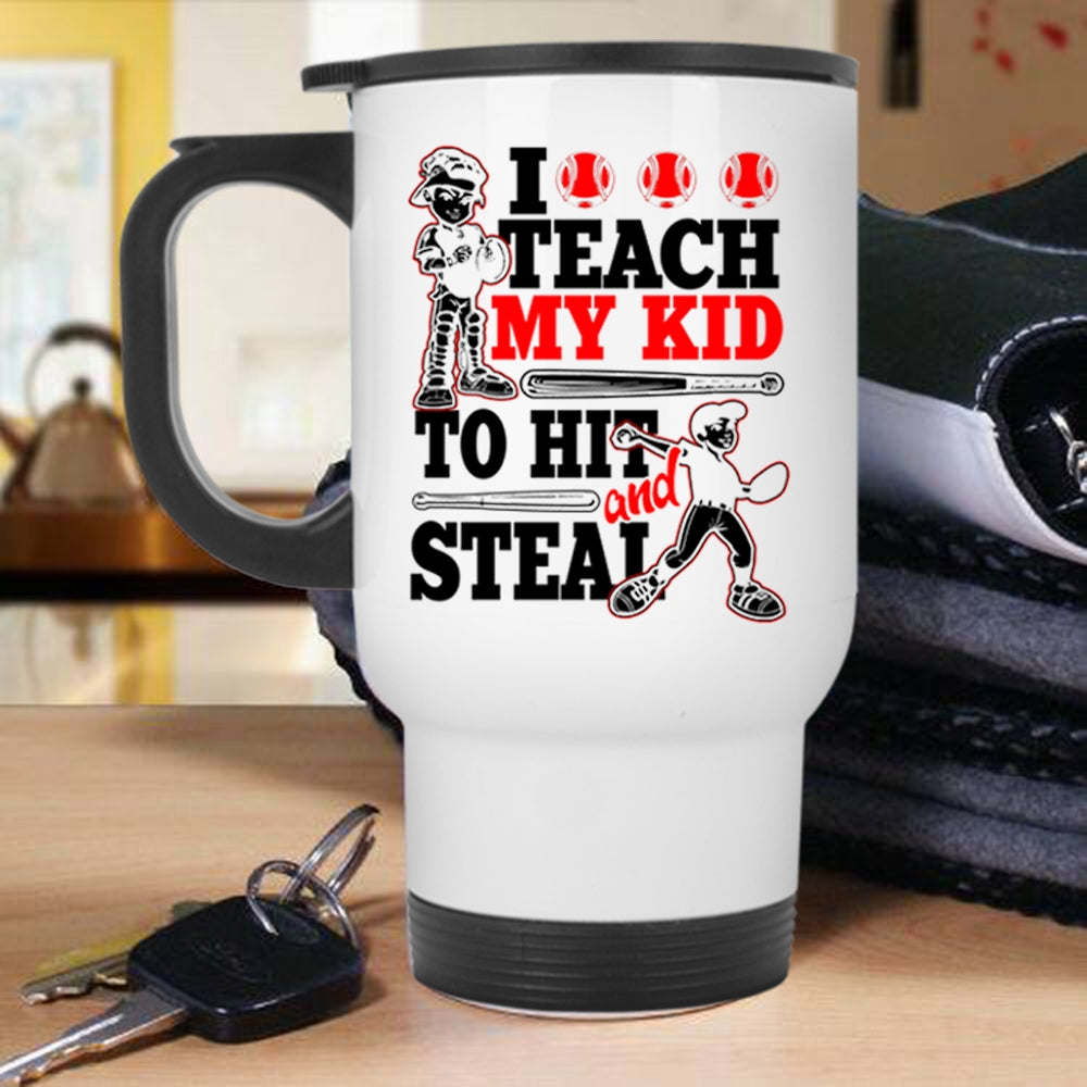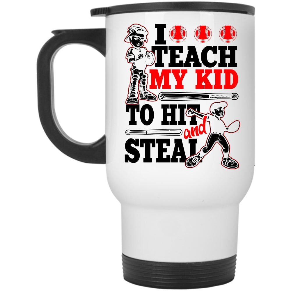Funny Softball Travel Mug, I Teach My Kid To Hit And Steal Mug