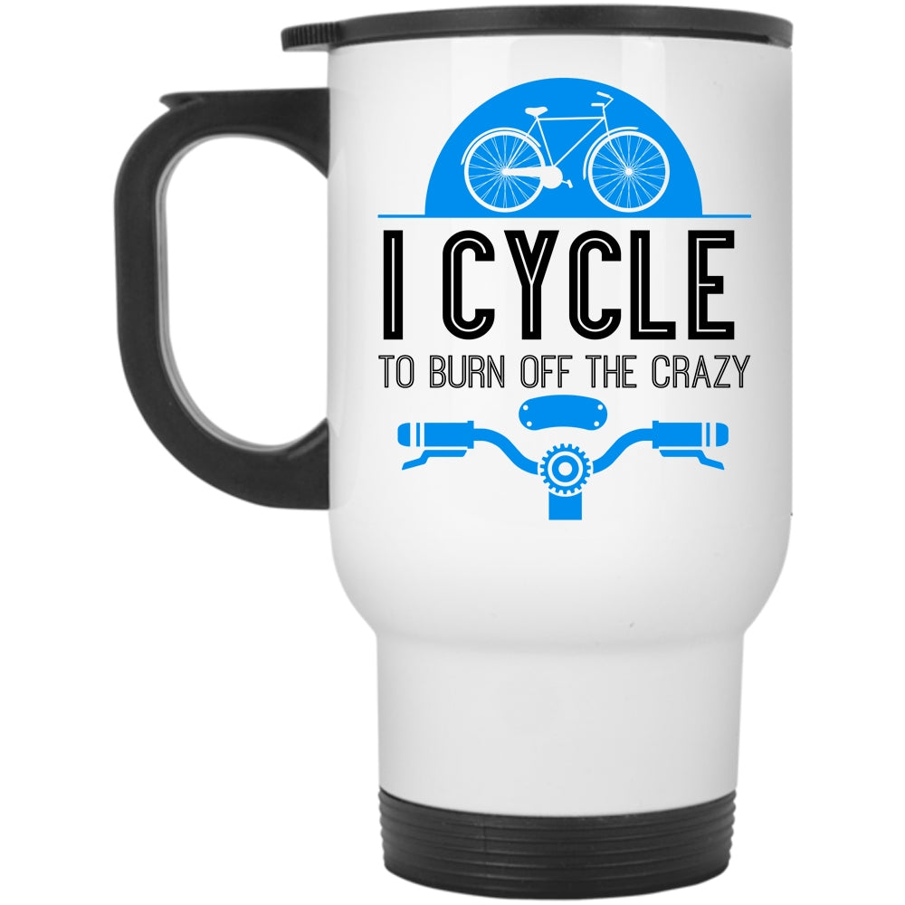 I Love Cycling Travel Mug, I Cycle To Burn Off The Crazy Mug
