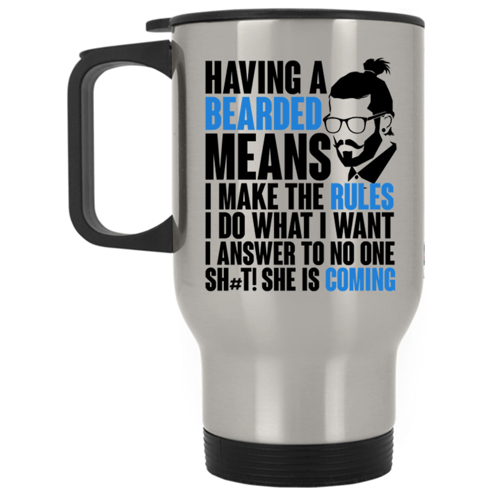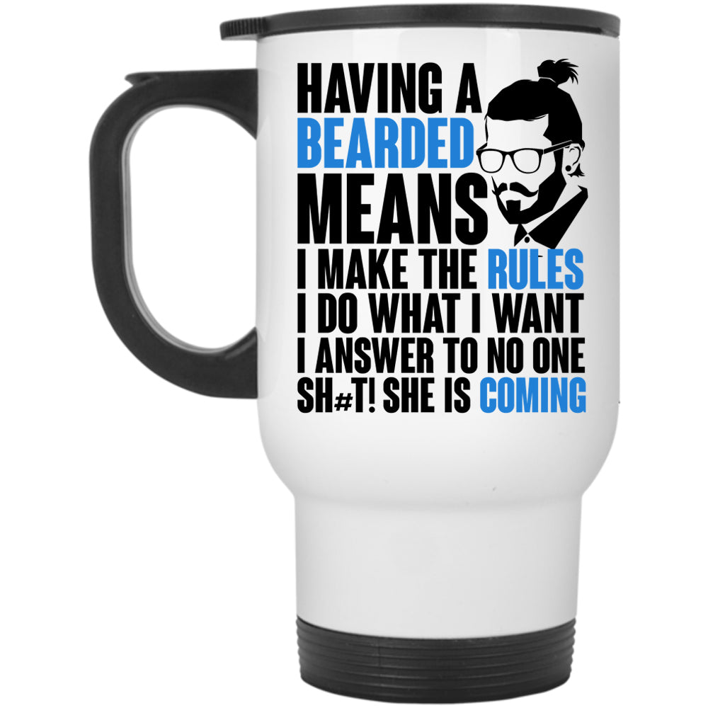 I make The Rules I Do What I Want Travel Mug, Having A Bearded Means Mug