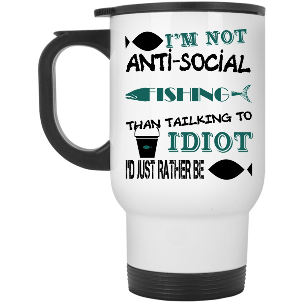 I'd Just Rather Be Fishing Travel Mug, I'm Not Anti-Social Mug
