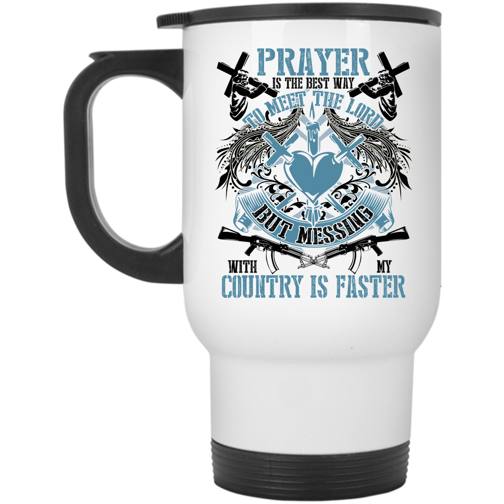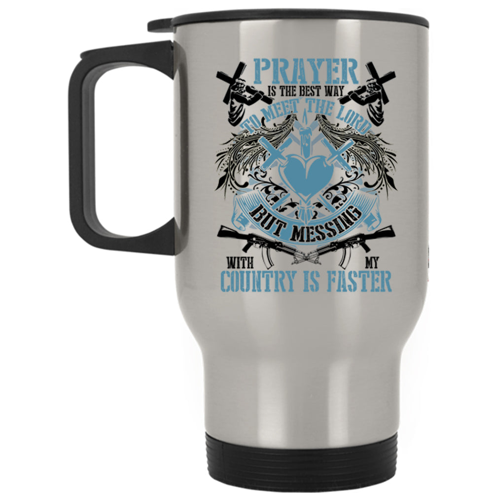 Messing With My Country Is Faster Travel Mug, Praye Is The Best Way To Meet The Lord Mug