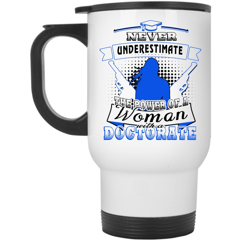Mom Travel Mug, The Power Of A Woman With A Doctorate Mug