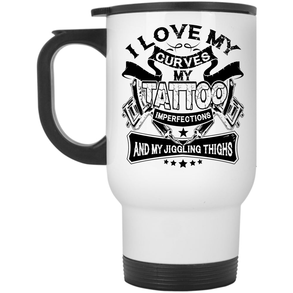 My Jiggling Thighs Travel Mug, I Love My Curves My Tattoo Imperfections Mug