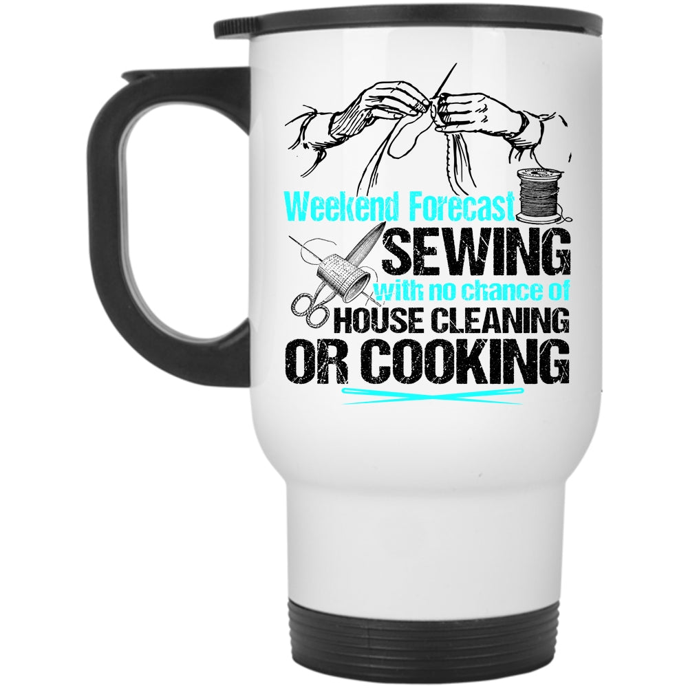 No Chance Of House Cleaning Or Cooking Travel Mug, Weekend Forecast Sewing Mug