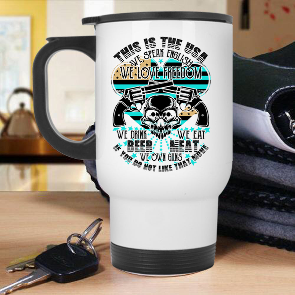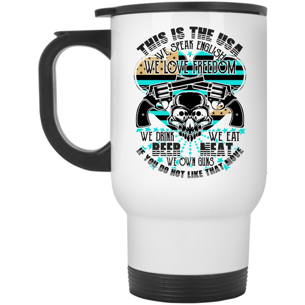 We Speak English We Love Freedom Travel Mug, This Is The USA Mug