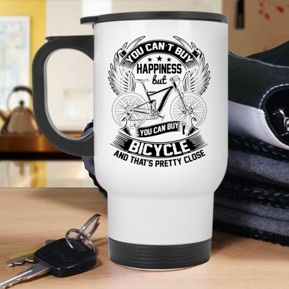 You Can Buy Bicycle Travel Mug, You can't Buy Happiness Mug