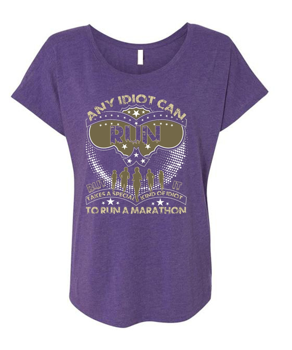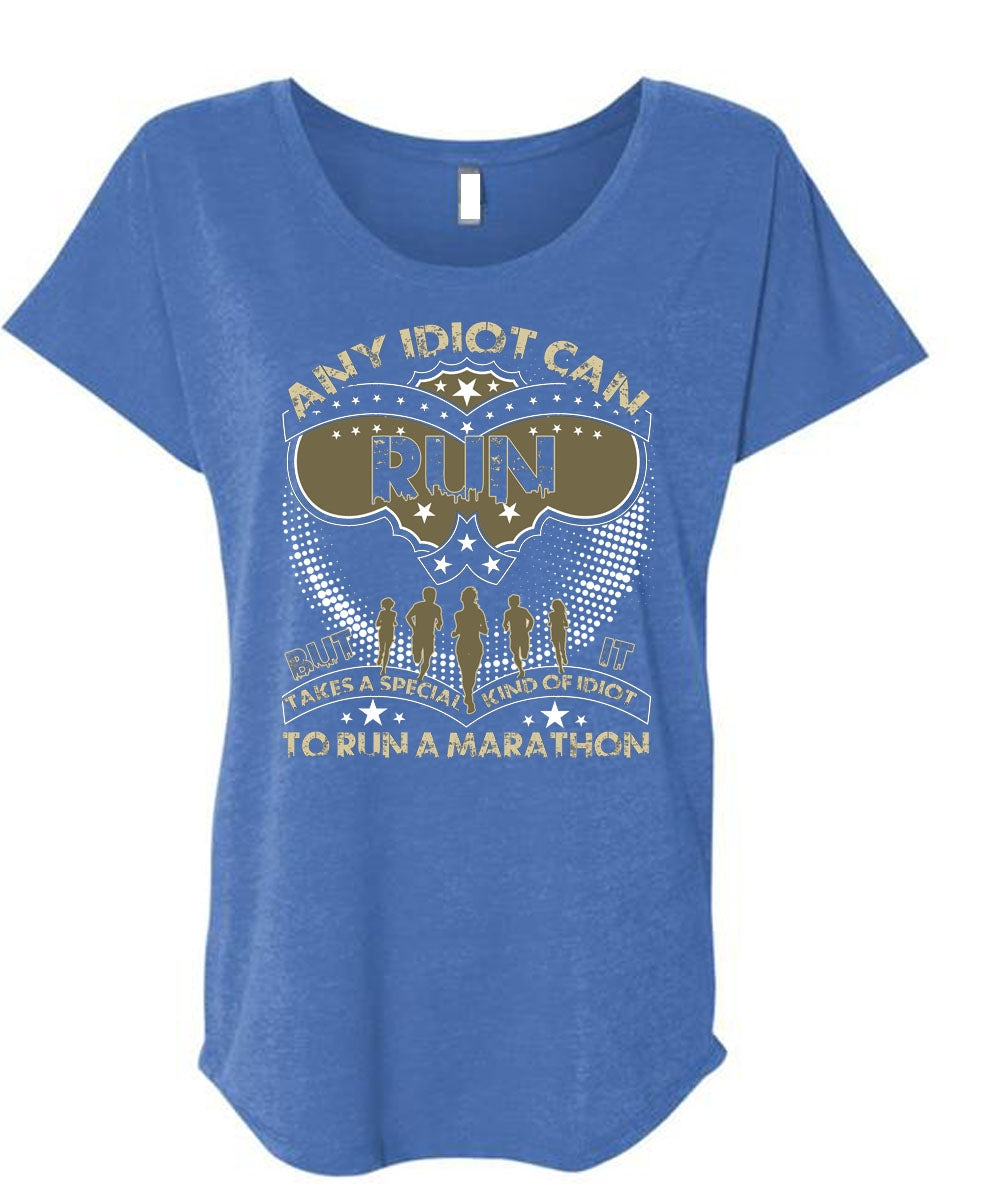 Any Idiot Can Run T Shirt, Run A Marathon T Shirt, Cool Shirt (Ladies' Triblend Dolman Sleeve)