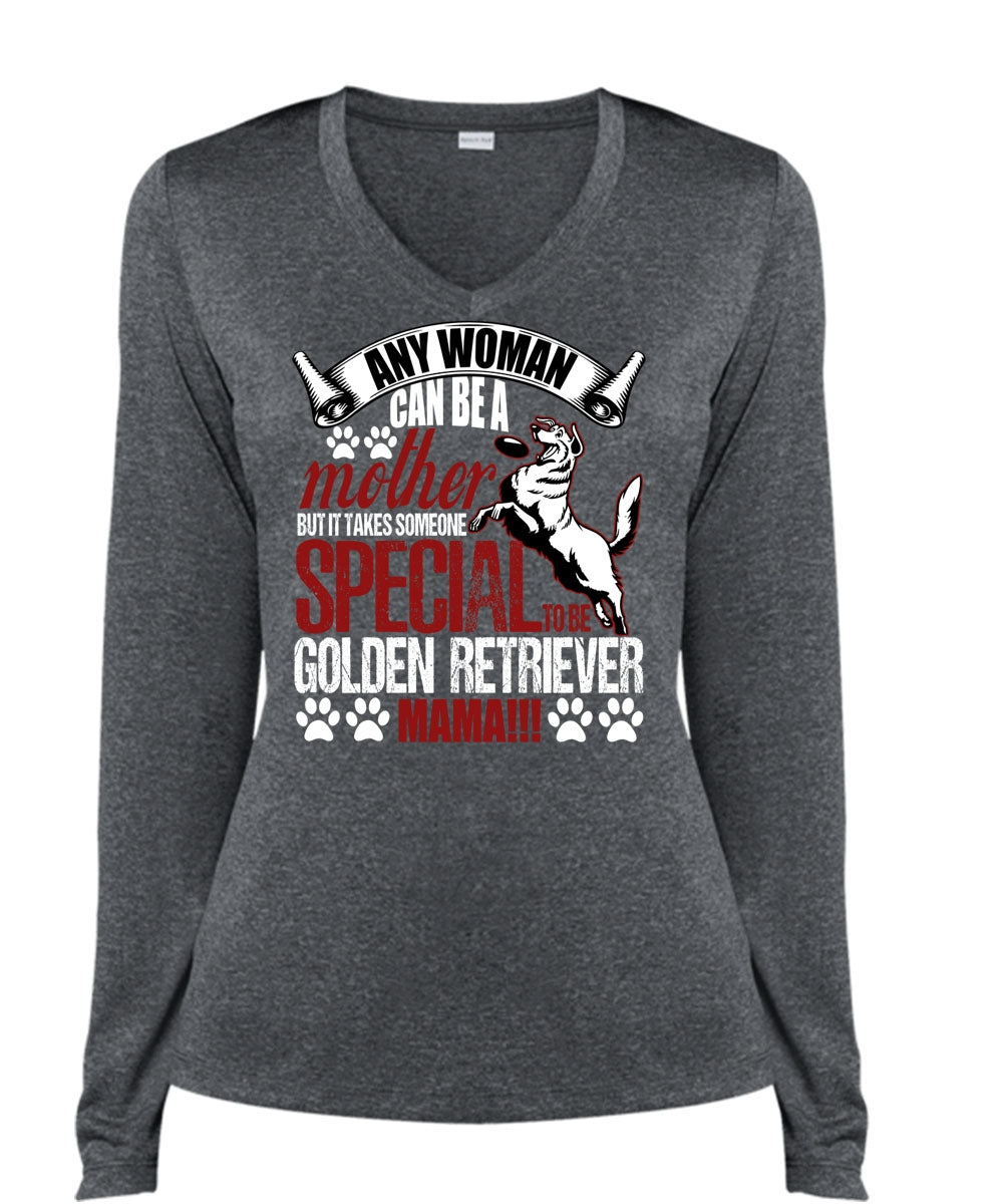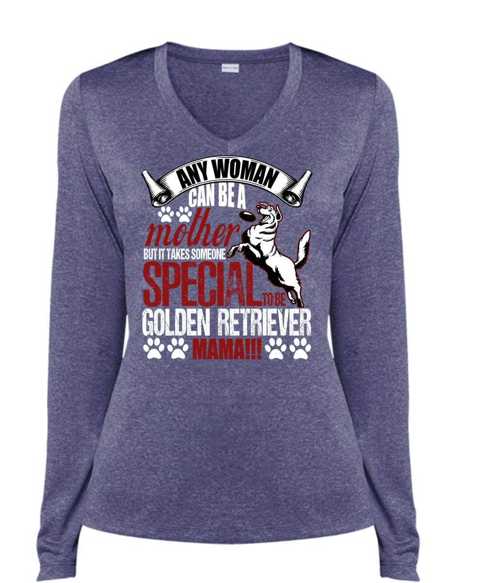 Any Woman Can Be A Mother T Shirt, Golden Retriever Mama T Shirt, Cool Shirt (Ladies LS Heather V-Neck)
