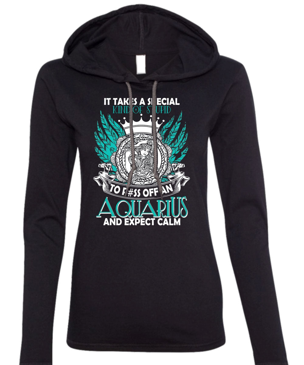 Aquarius And Expect Calm T Shirt, Kind Of Stupid T Shirt (Anvil Ladies Ringspun Hooded)