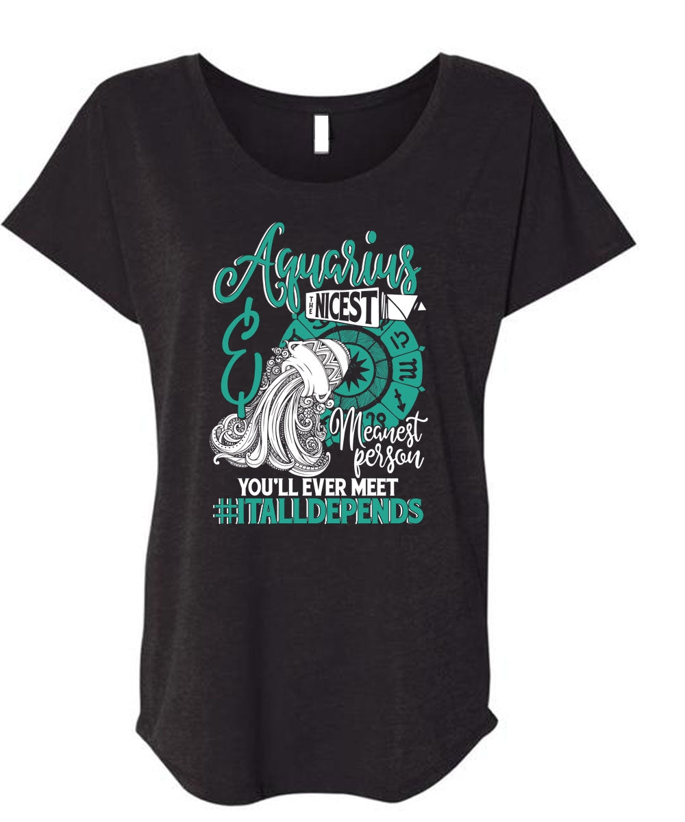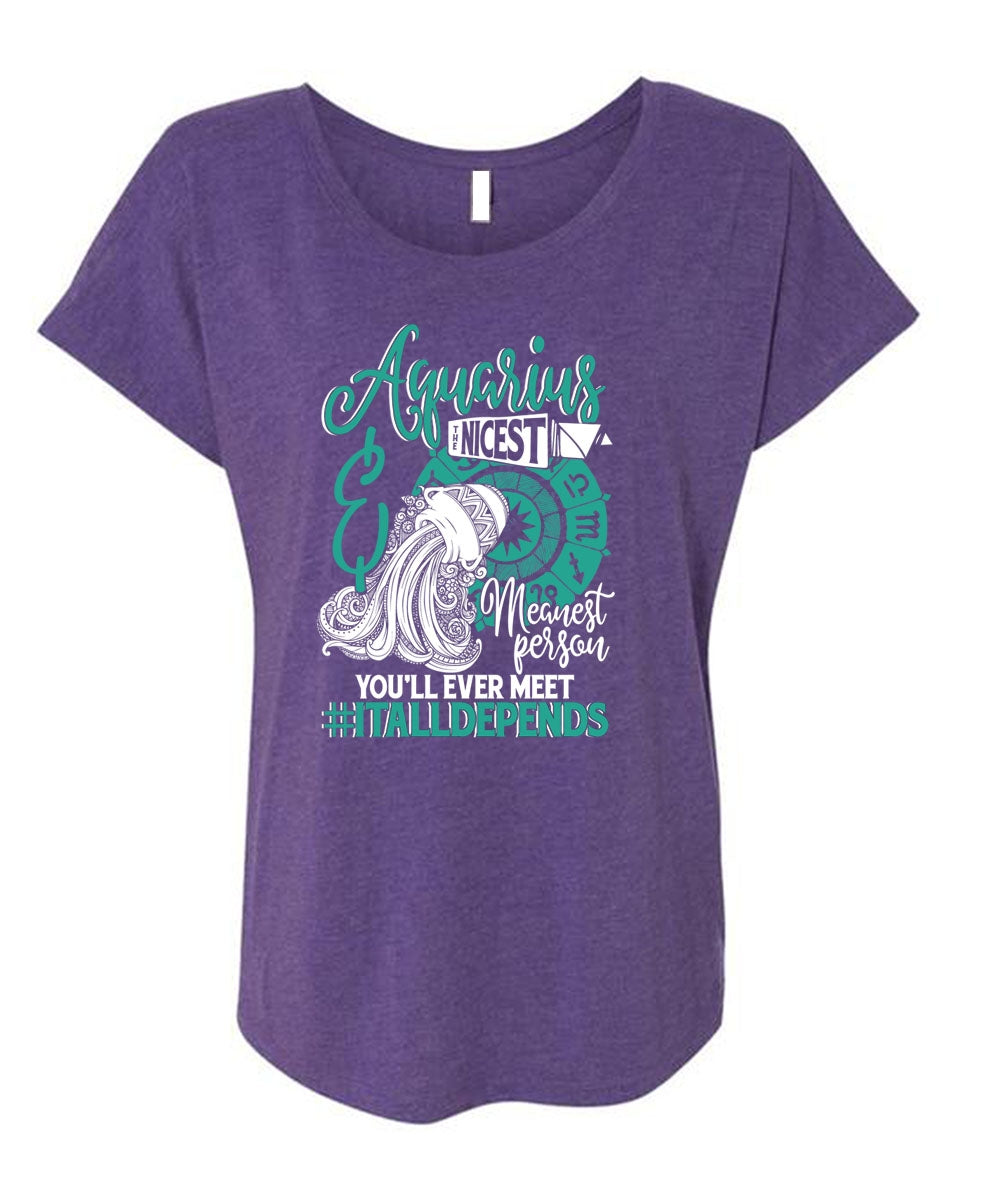 Aquarius Nicest Meanest Person T Shirt, Being An Aquarius T Shirt, Cool Shirt (Ladies' Triblend Dolman Sleeve)