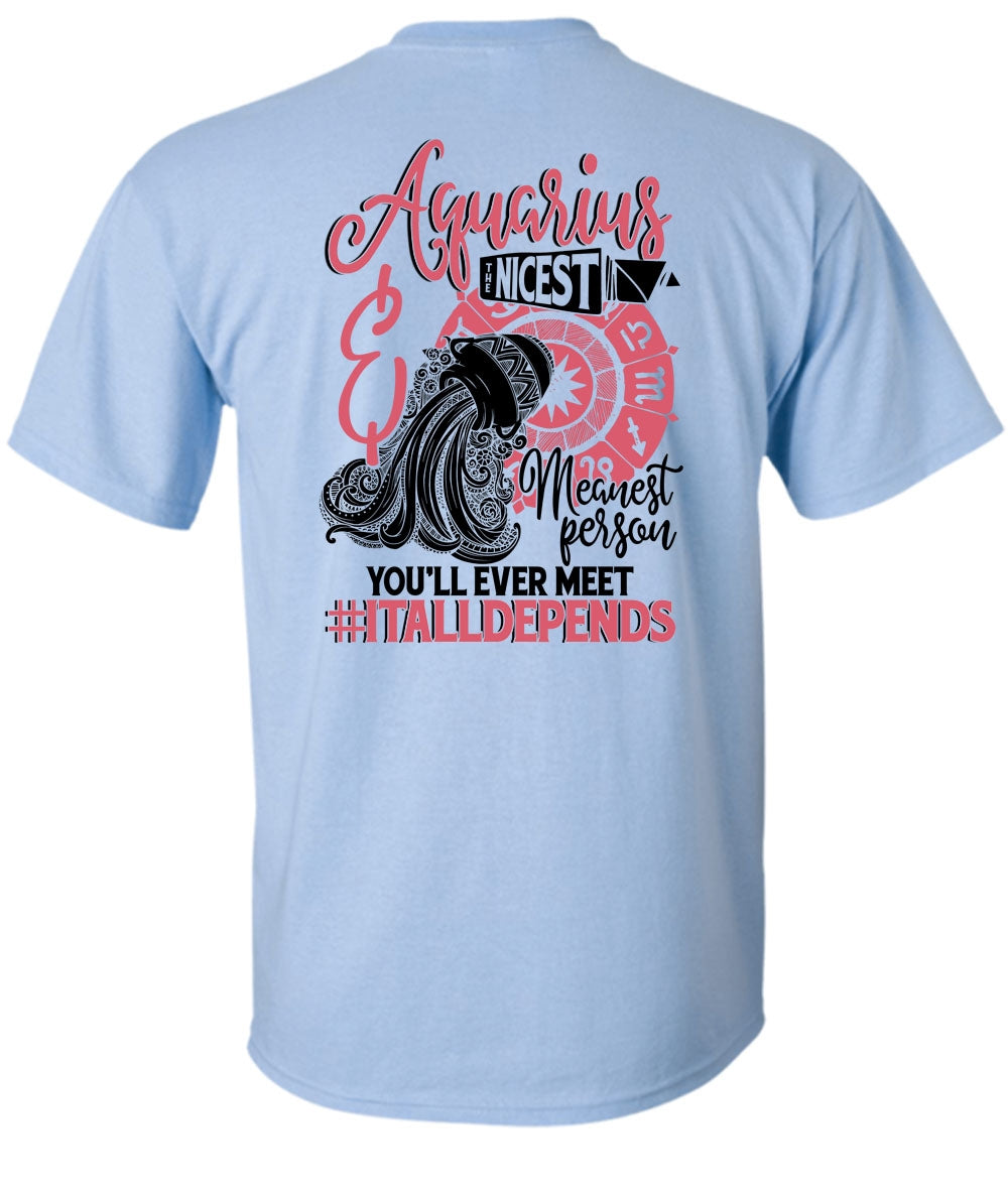 Aquarius Nicest Meanest Person T Shirt, I Love Aquarius T Shirt