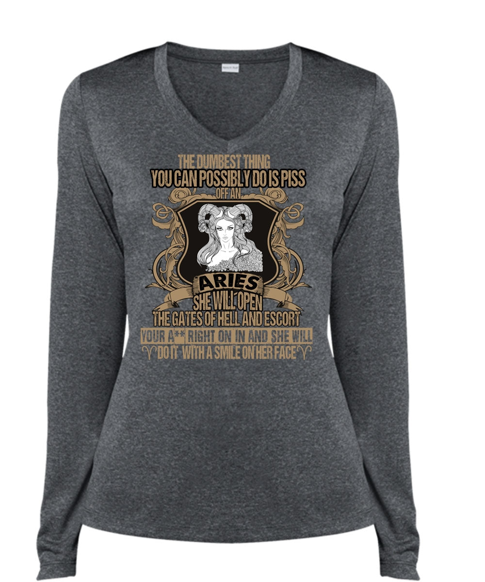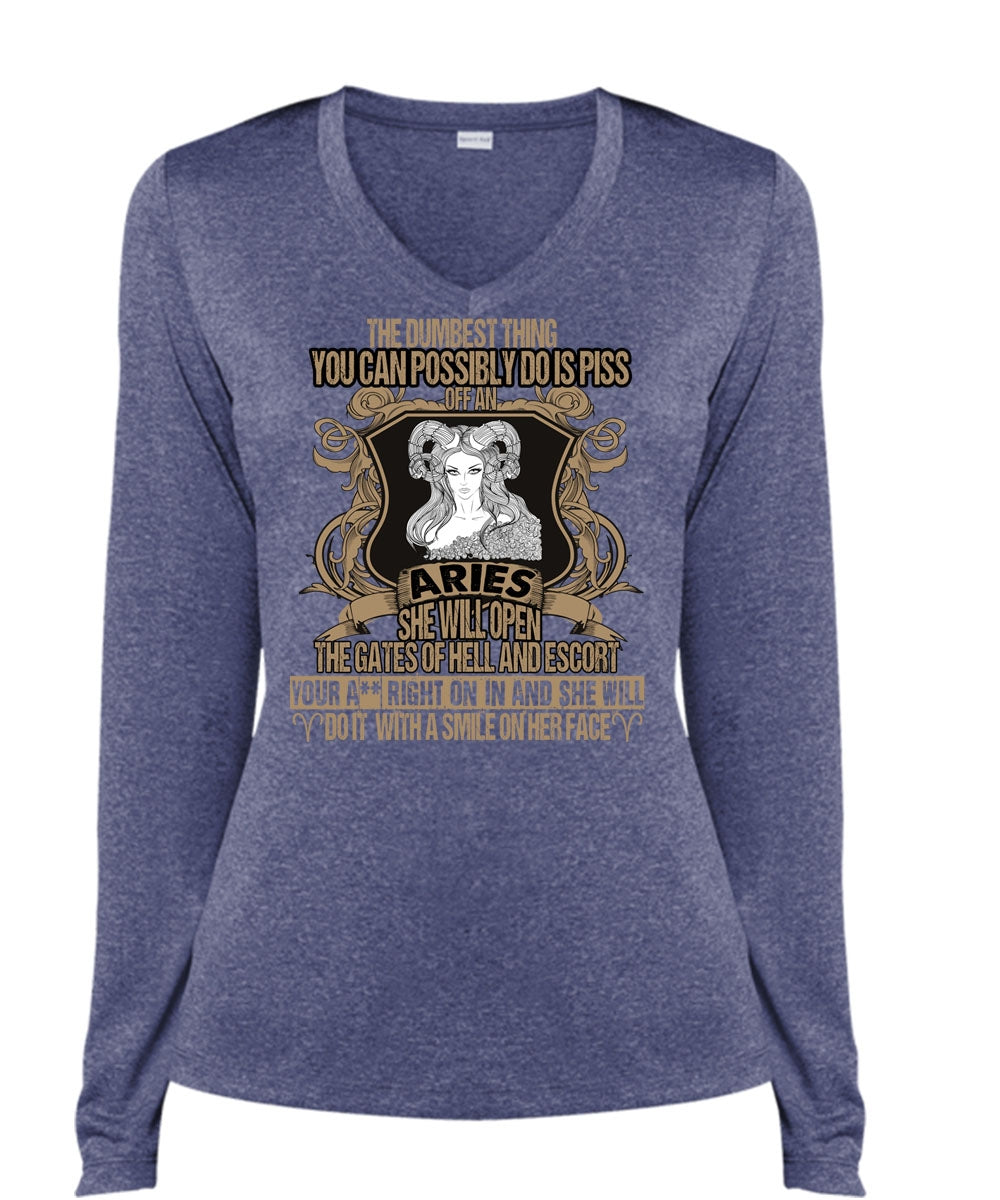 Aries She Will Open The Gates T Shirt, Being An Aries T Shirt, Cool Shirt (Ladies LS Heather V-Neck)