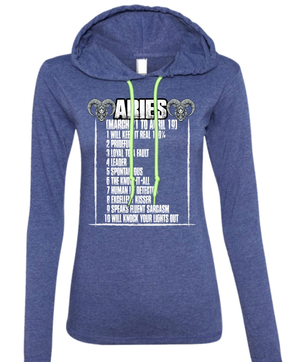 Aries Will Knock Your Lights Out T Shirt, Being An Aries T Shirt (Anvil Ladies Ringspun Hooded)