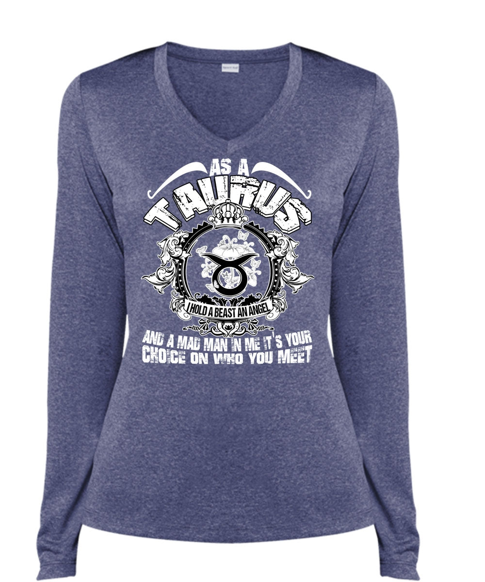 As A Taurus T Shirt, I Hold A Beast An Angel T Shirt, Cool Shirt (Ladies LS Heather V-Neck)