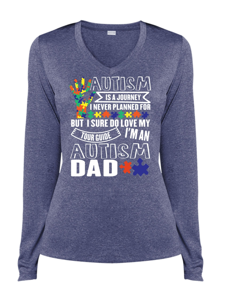 Autism Is A Journey T Shirt, I'm An Autism Dad T Shirt, Cool Shirt (Ladies LS Heather V-Neck)