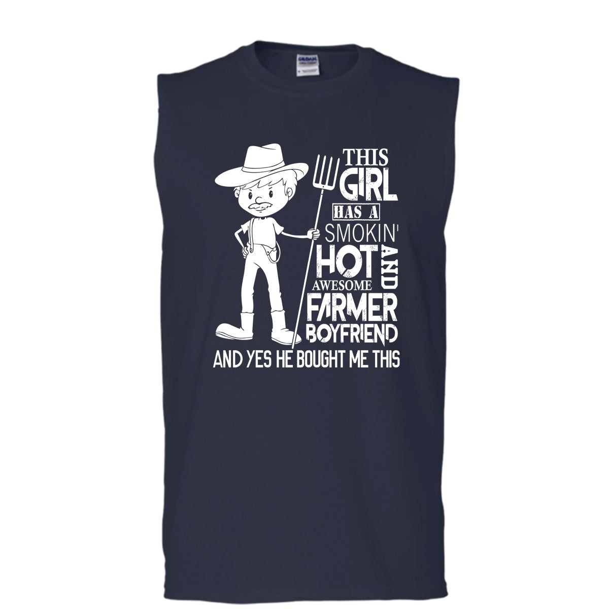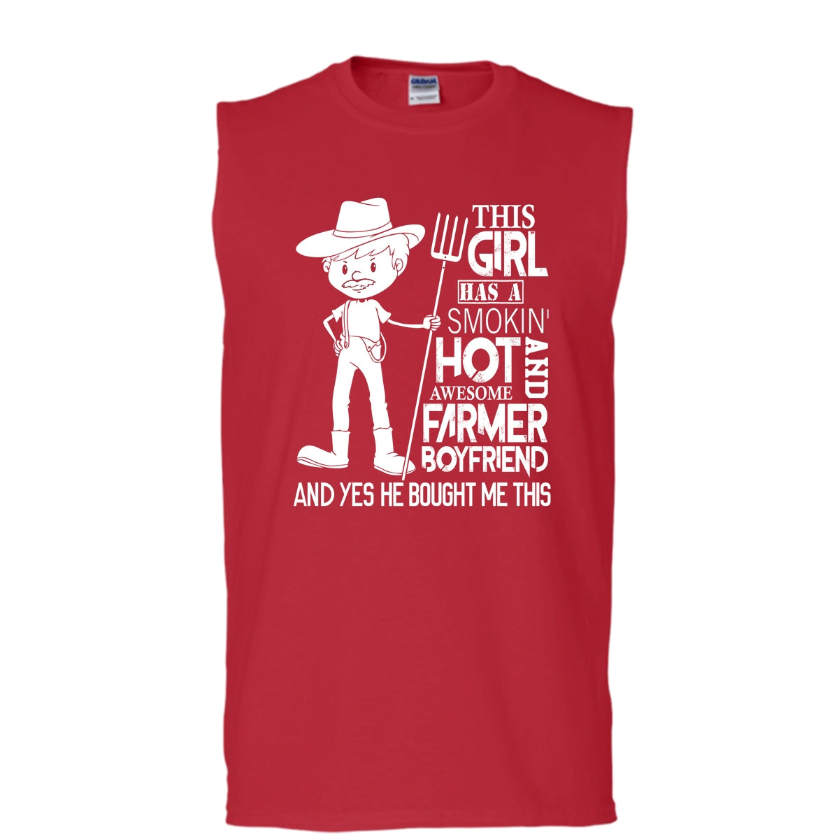 Awesome Farmer Boyfriend T Shirt, Coolest Farmer's Girlfriend T Shirt, Cool T Shirt (Men's Cotton Sleeveless)