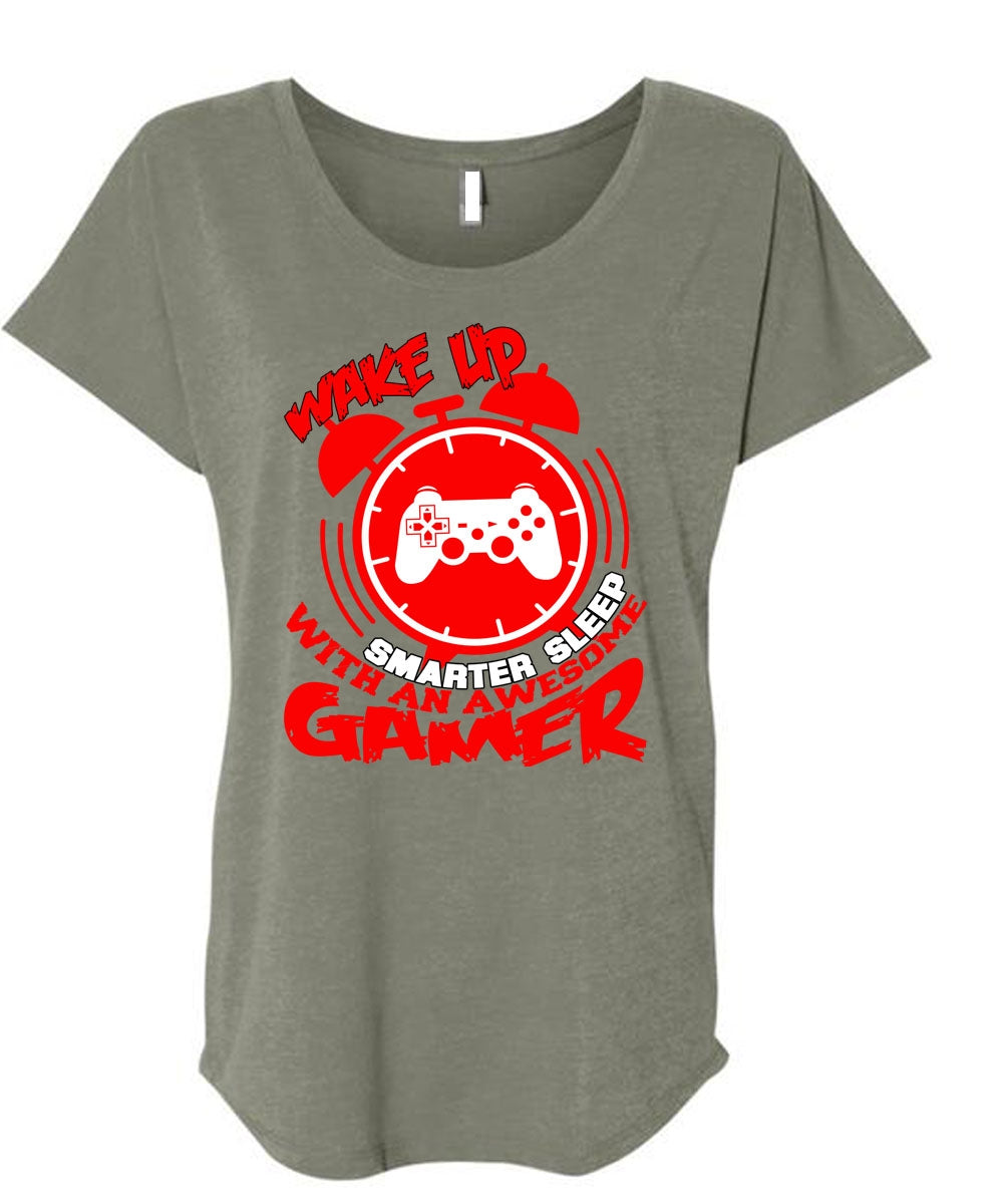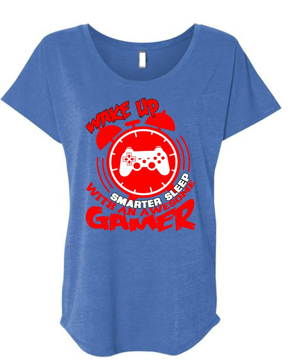 Awesome Gamer T Shirt, Wakeup Smarter Sleep T Shirt, Cool Shirt (Ladies' Triblend Dolman Sleeve)