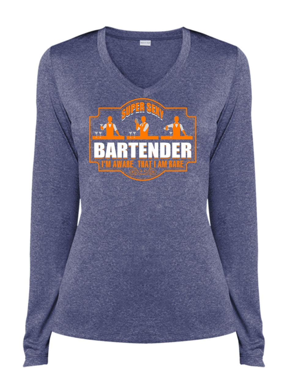 Bartender I'm Aware T Shirt, Being A Bartender T Shirt, Cool Shirt (Ladies LS Heather V-Neck)