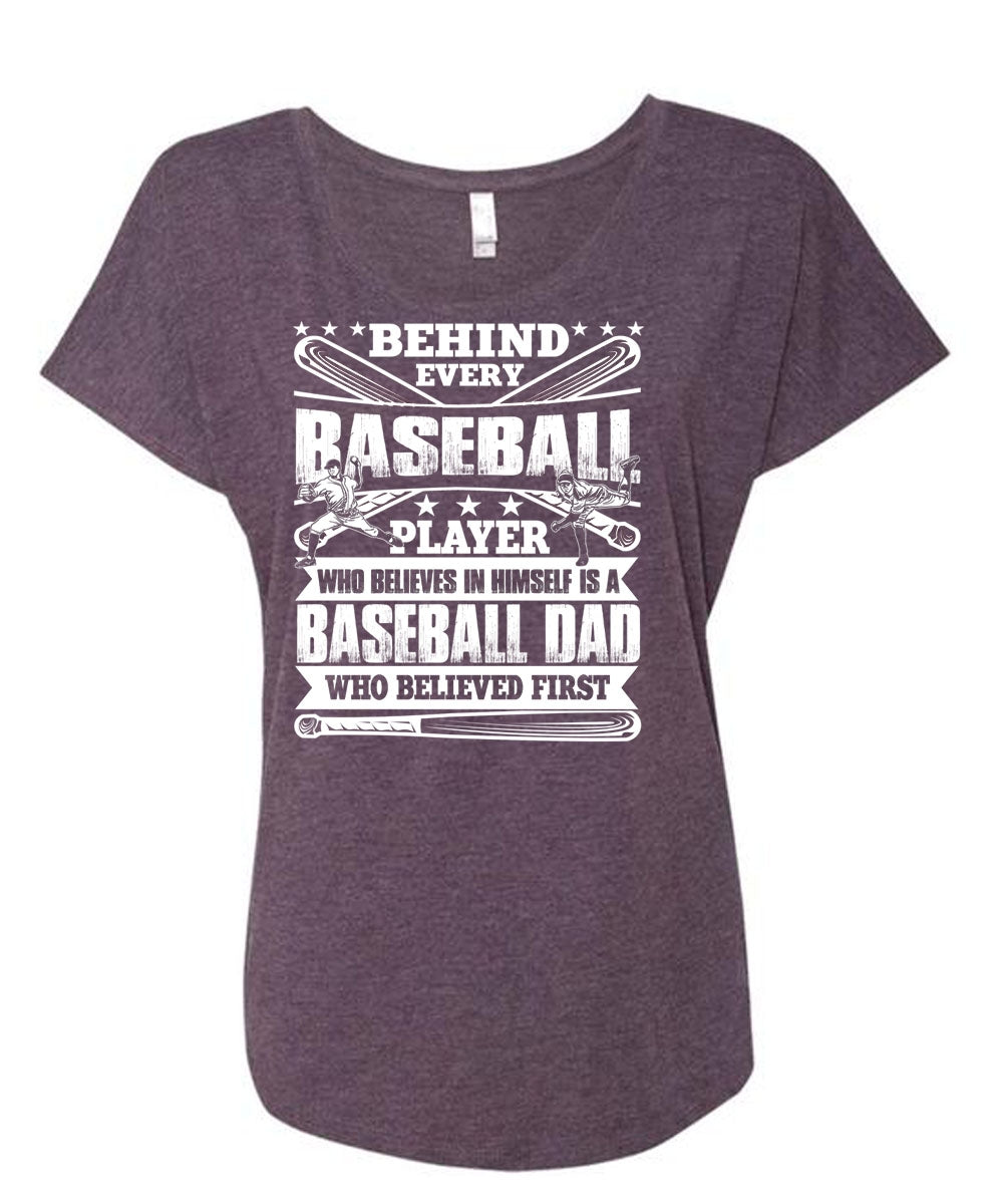 Baseball Dad T Shirt, Behind Every Baseball T Shirt, Cool Shirt (Ladies' Triblend Dolman Sleeve)